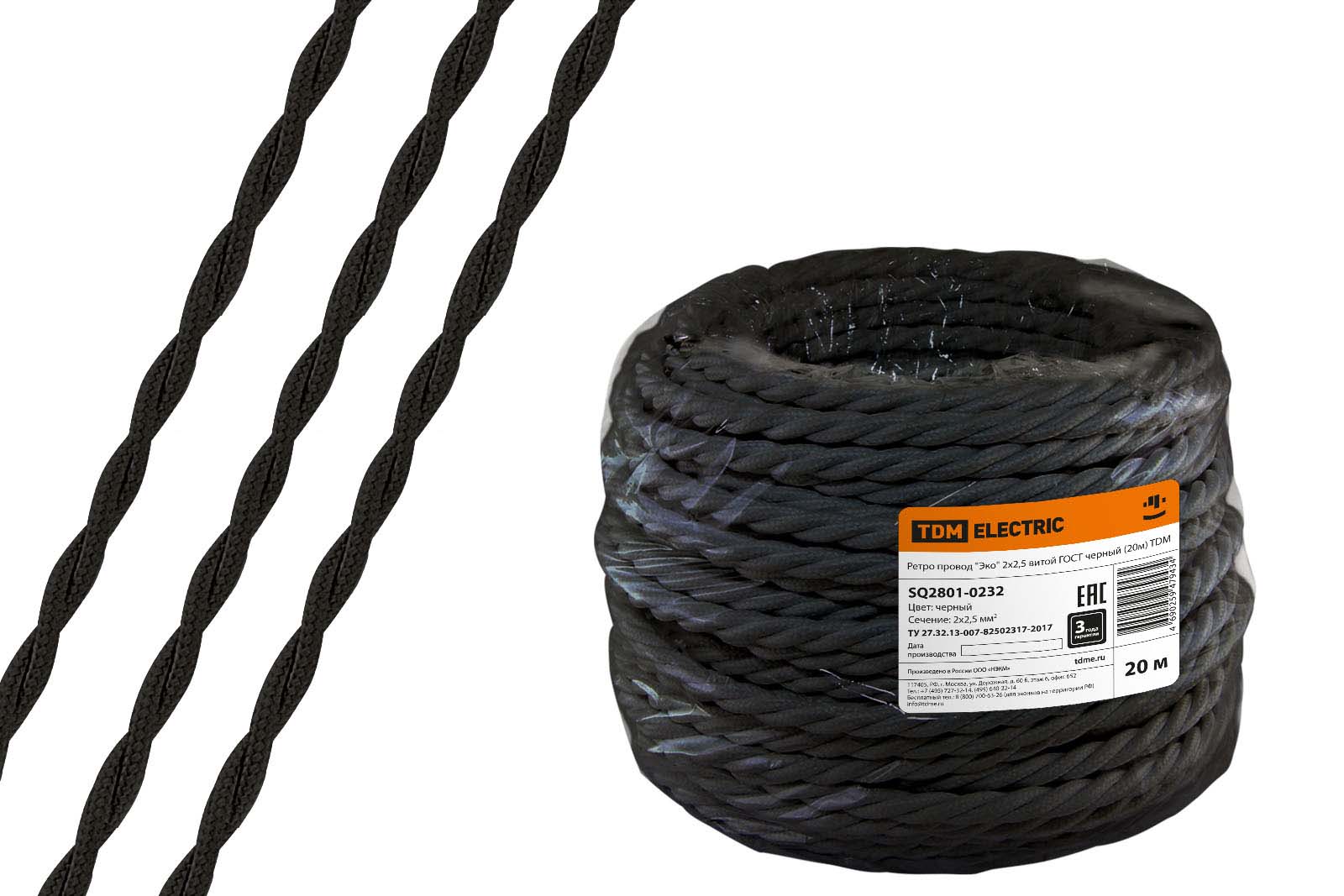 Наименование: Ретро провод "Эко" 2х2,5 витой ГОСТ черный (20м) TDM