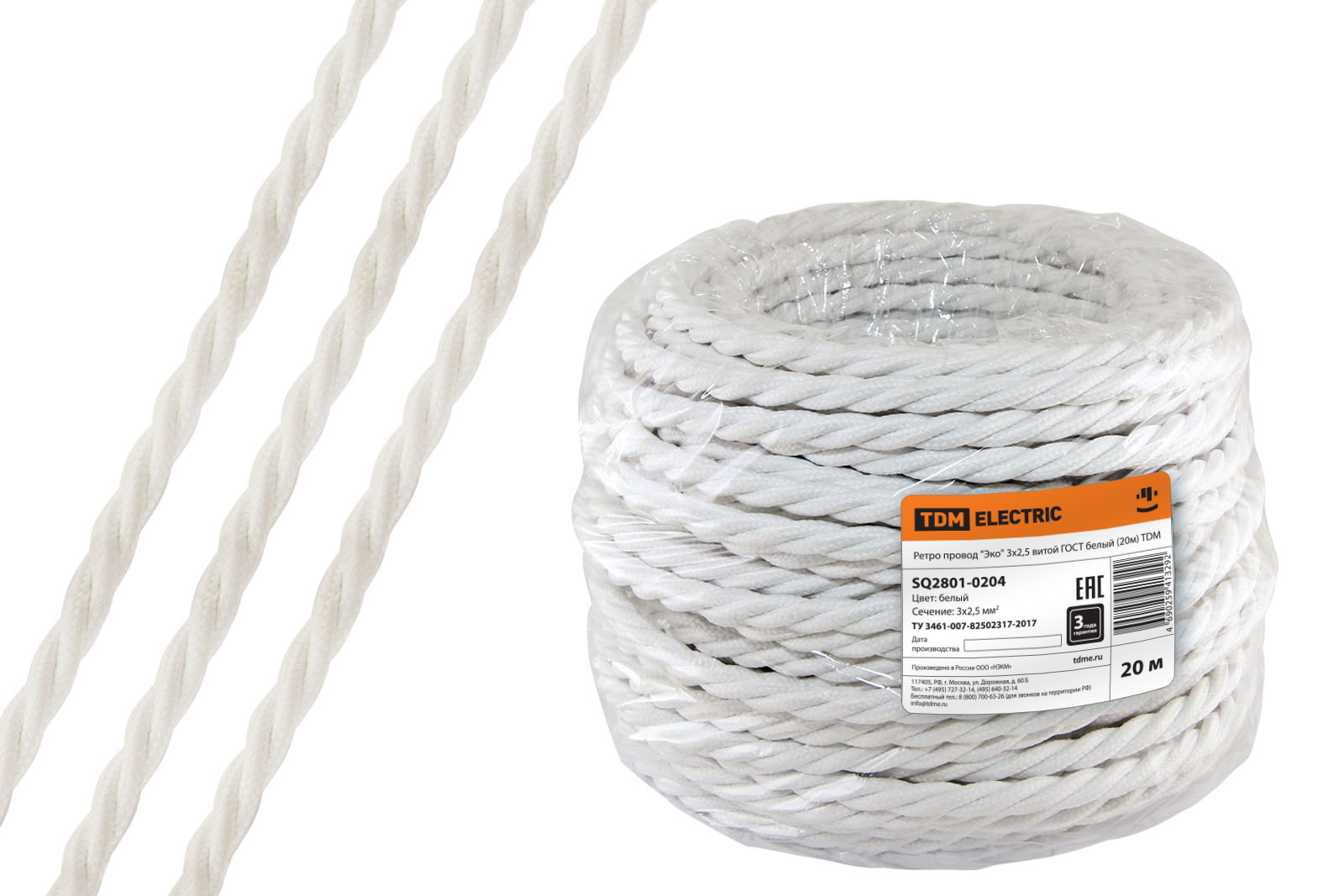 Ретро провод "Эко" 3х2,5 витой ГОСТ белый (20м) TDM