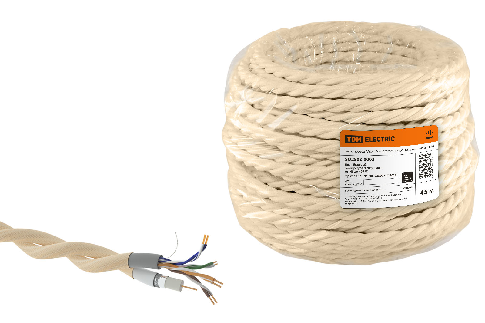 Наименование: Ретро провод "Эко" TV + Internet витой, бежевый (45м) TDM