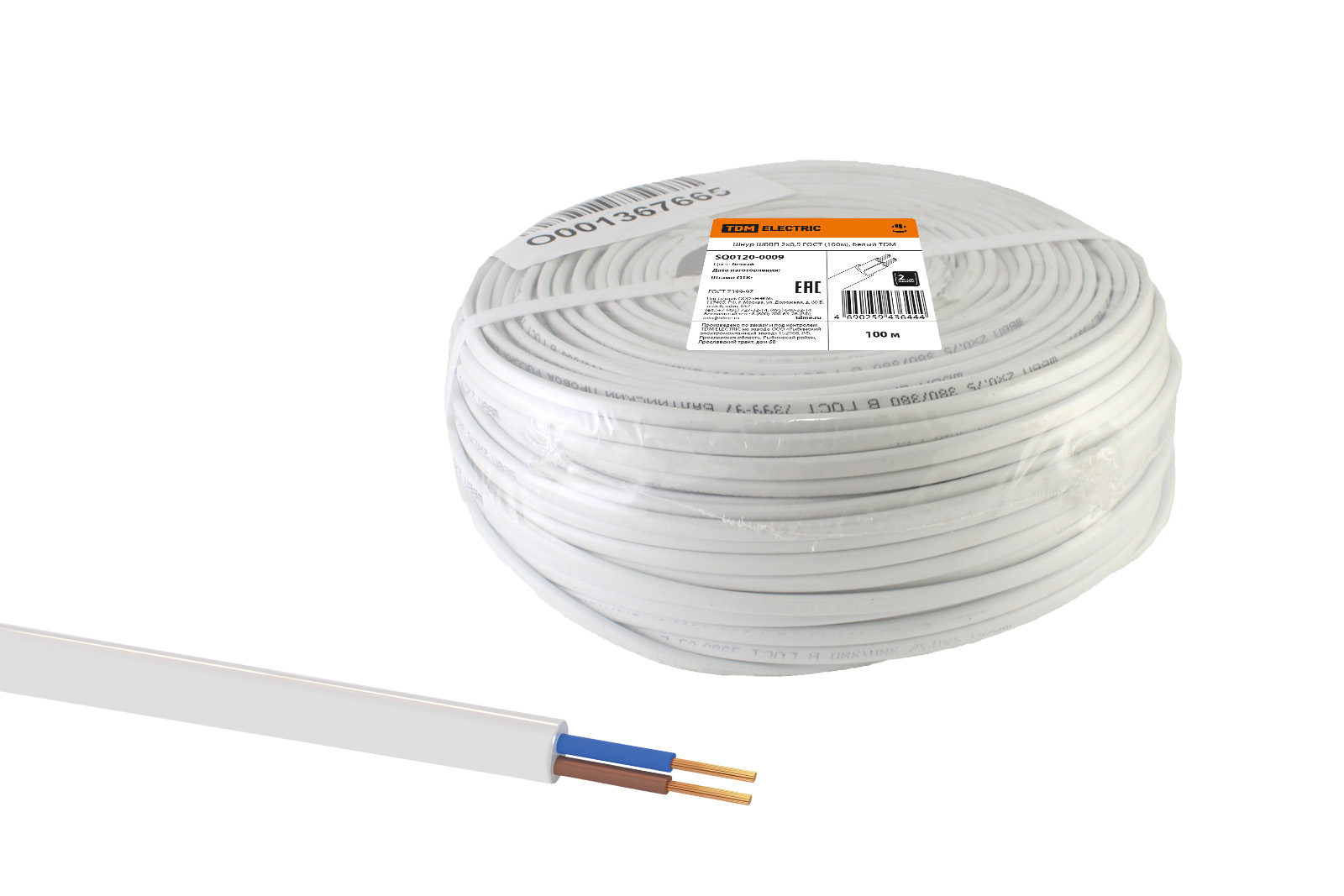 Наименование: Шнур ШВВП 2х0,5 ГОСТ (100м), белый TDM