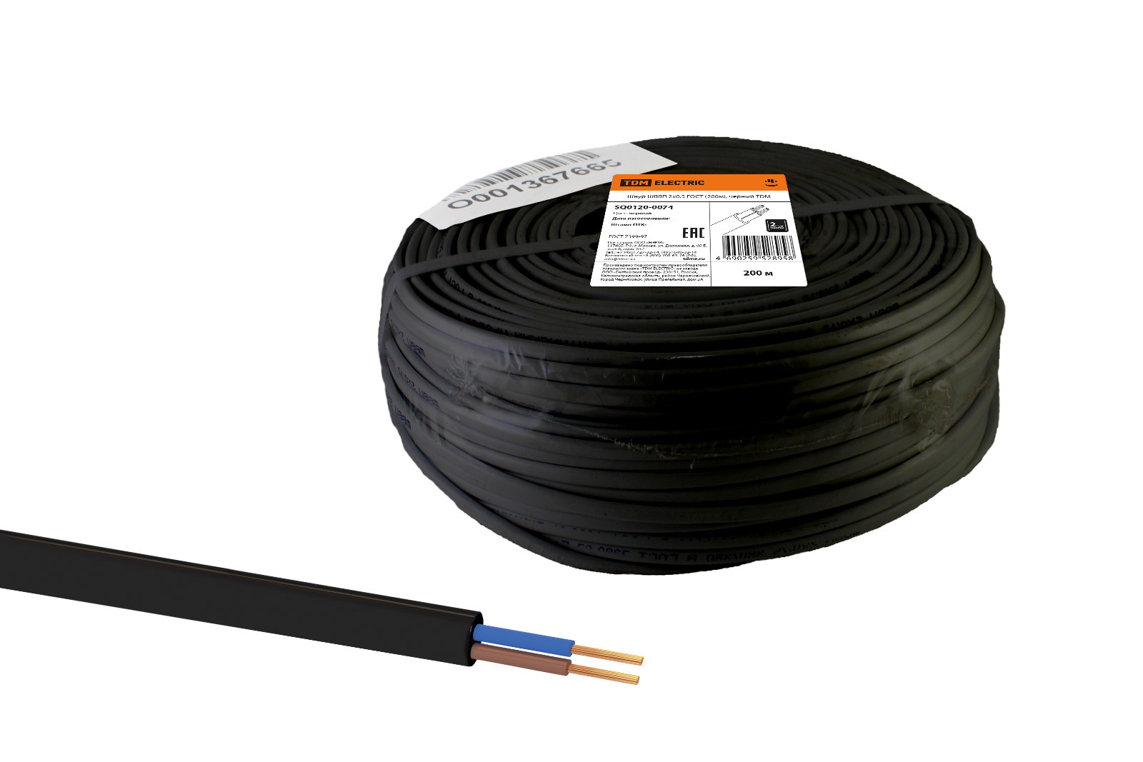 Наименование: Шнур ШВВП 2х0,5 ГОСТ (200м), черный TDM