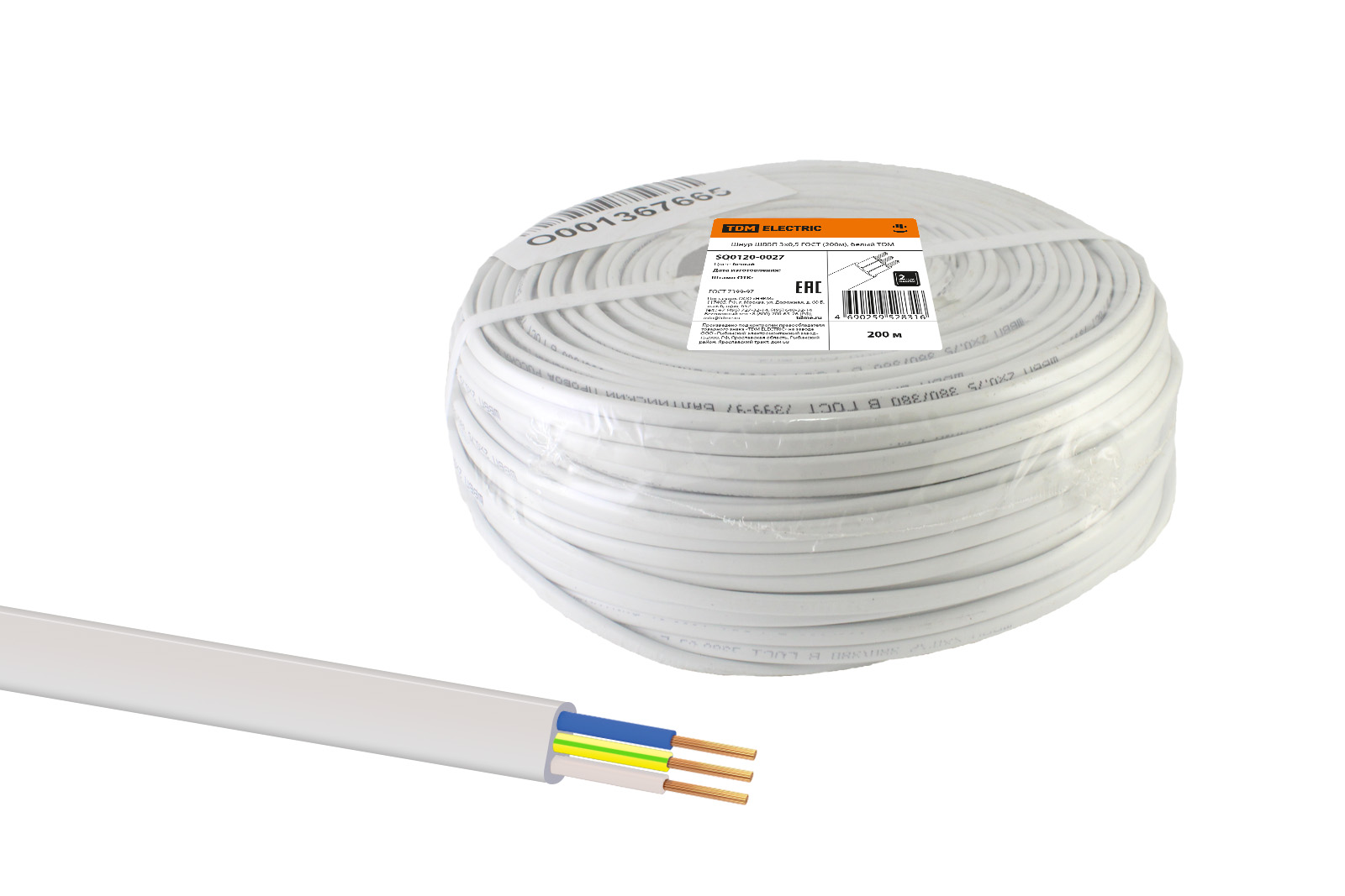 Наименование: Шнур ШВВП 3х0,5 ГОСТ (200м), белый TDM