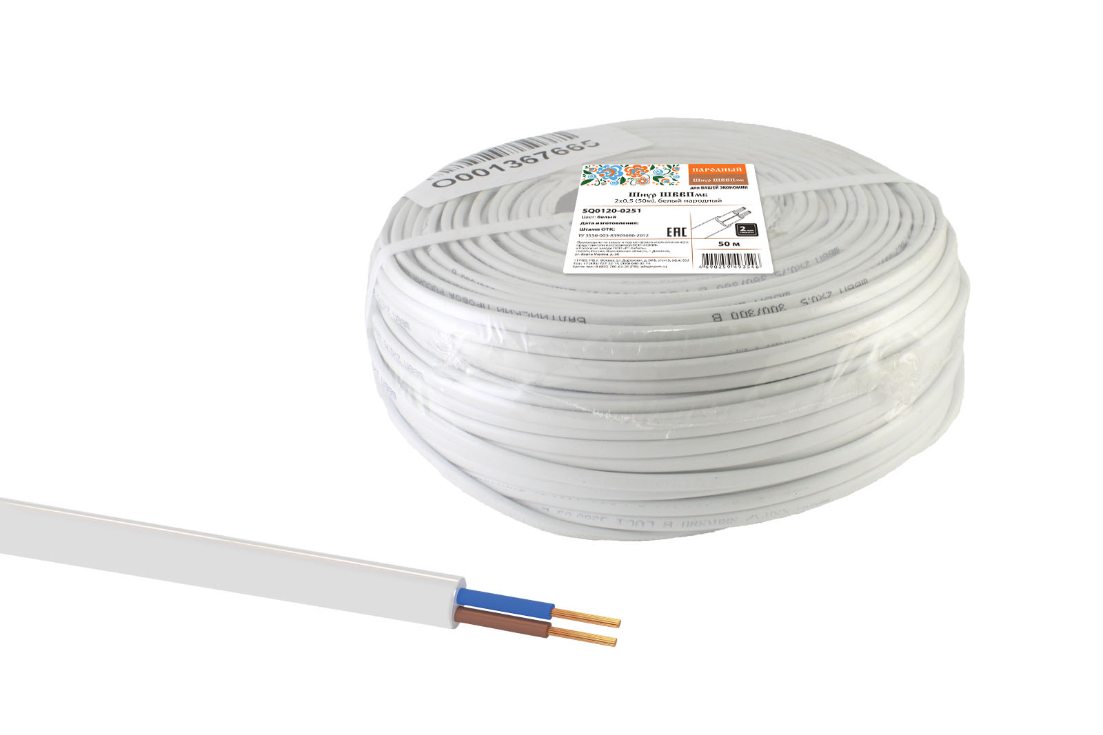 Наименование: Шнур ШВВПмб 2х0,5 (50м), белый Народный