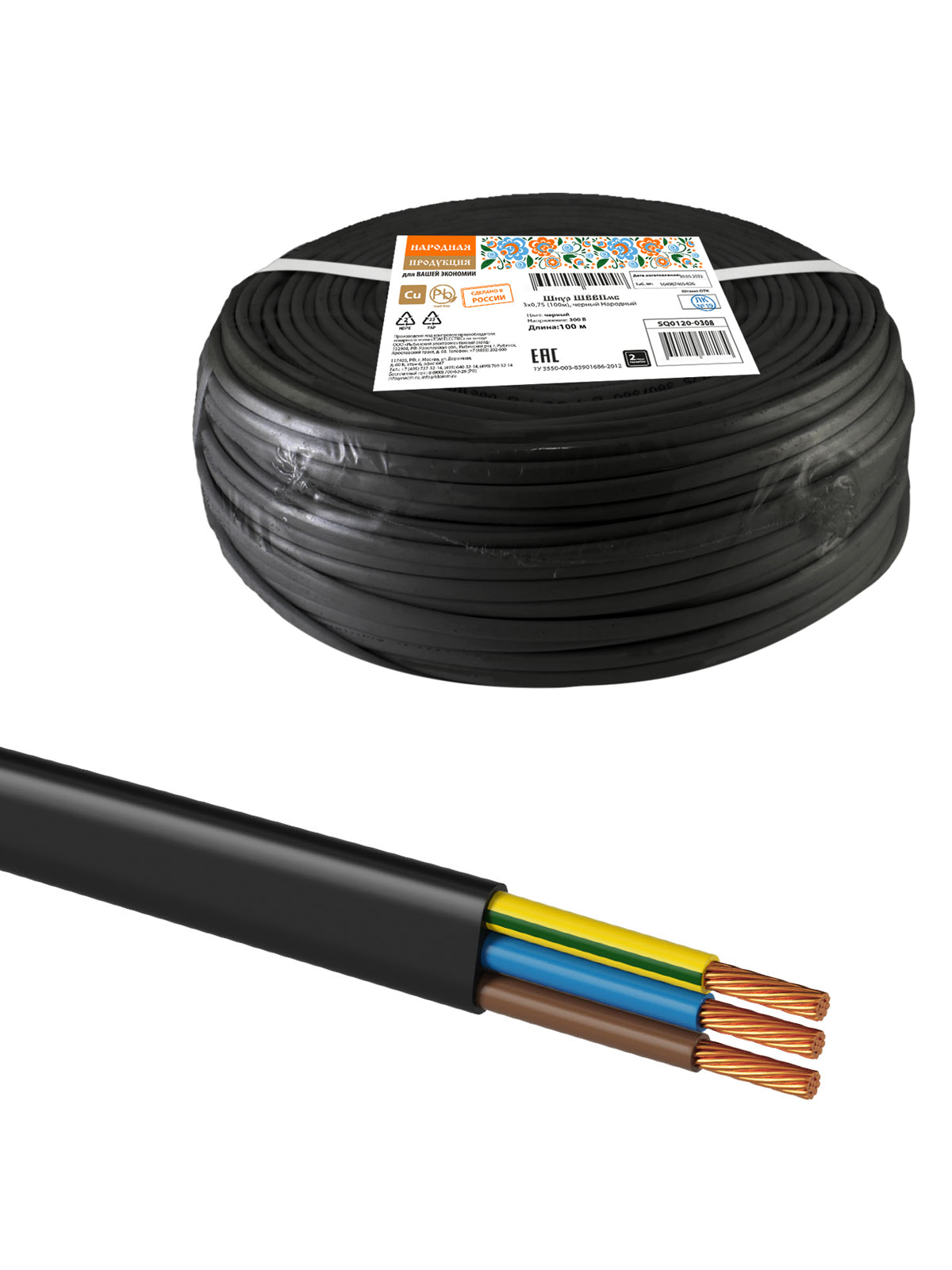 Наименование: Шнур ШВВПмб 3х0,75 (100м), черный Народный