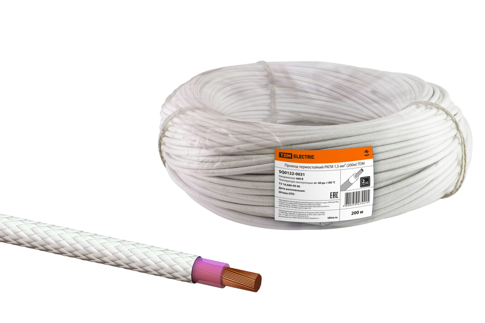 Наименование: Провод термостойкий РКГМ 1,5 мм (200м) TDM