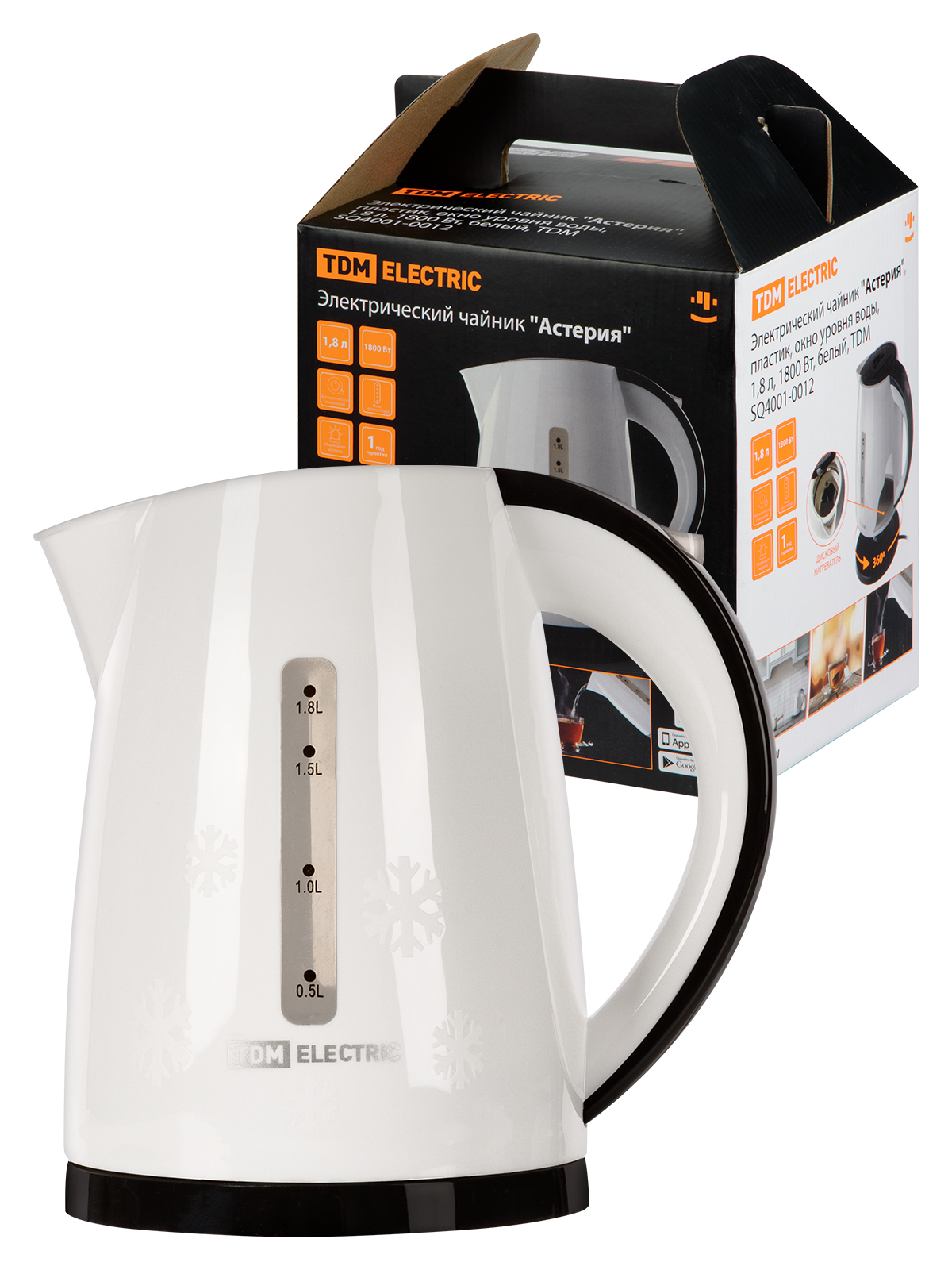 Наименование: Электрический чайник "Астерия", пластик, окно уровня воды, 1,8 л, 1800 Вт, белый, TDM