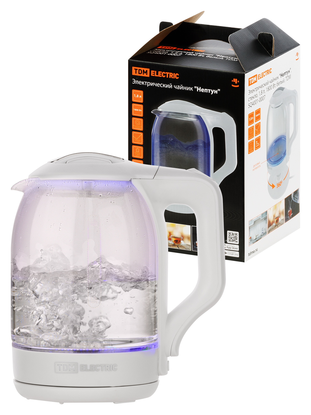 Наименование: Электрический чайник "Нептун", стекло, 1,8 л, 1800 Вт, белый, TDM