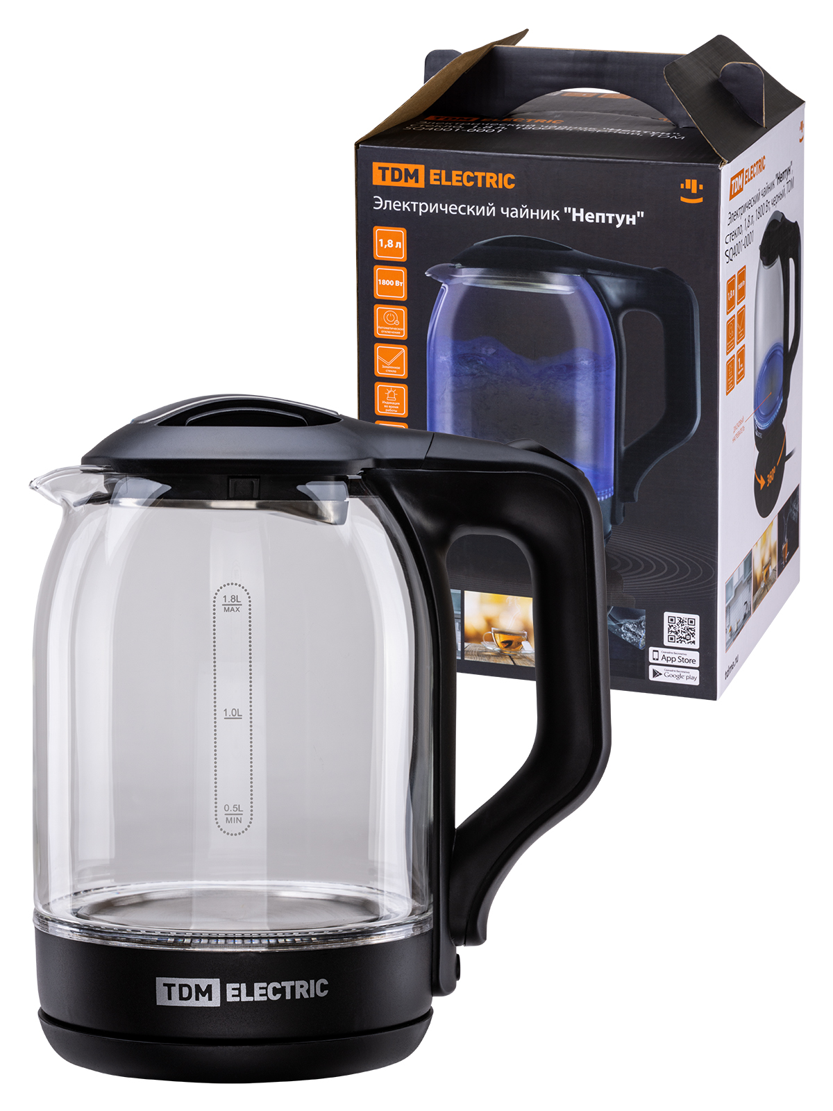 Наименование: Электрический чайник "Нептун", стекло, 1,8 л, 1800 Вт, черный, TDM