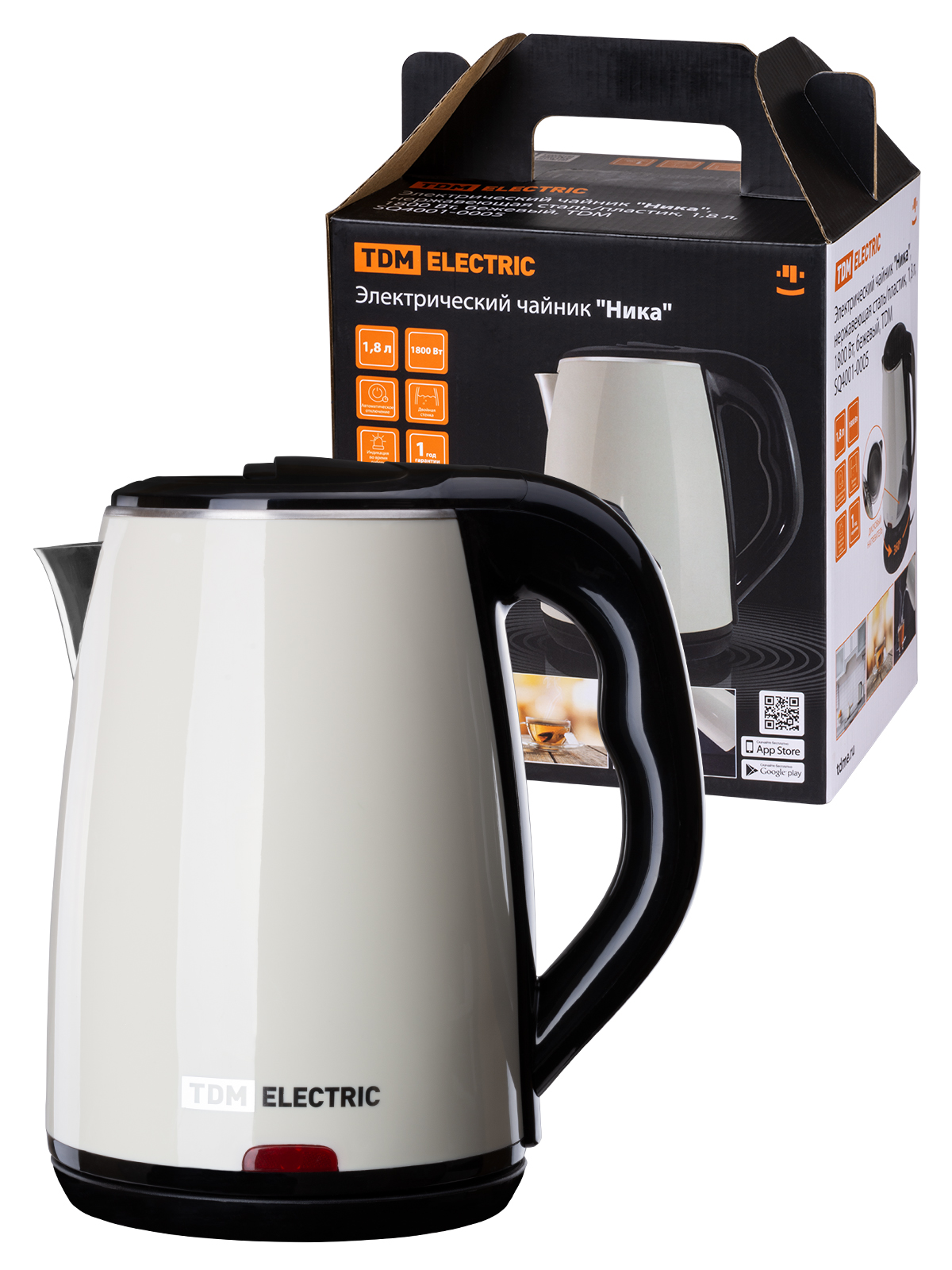 Наименование: Электрический чайник "Ника", нержавеющая сталь / пластик, 1,8 л, 1800 Вт, бежевый, TDM