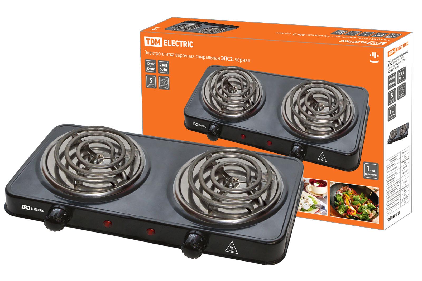 Наименование: Электроплитка двухконф. ЭПС2 230 В, 2х1 кВт, спираль, черная, TDM