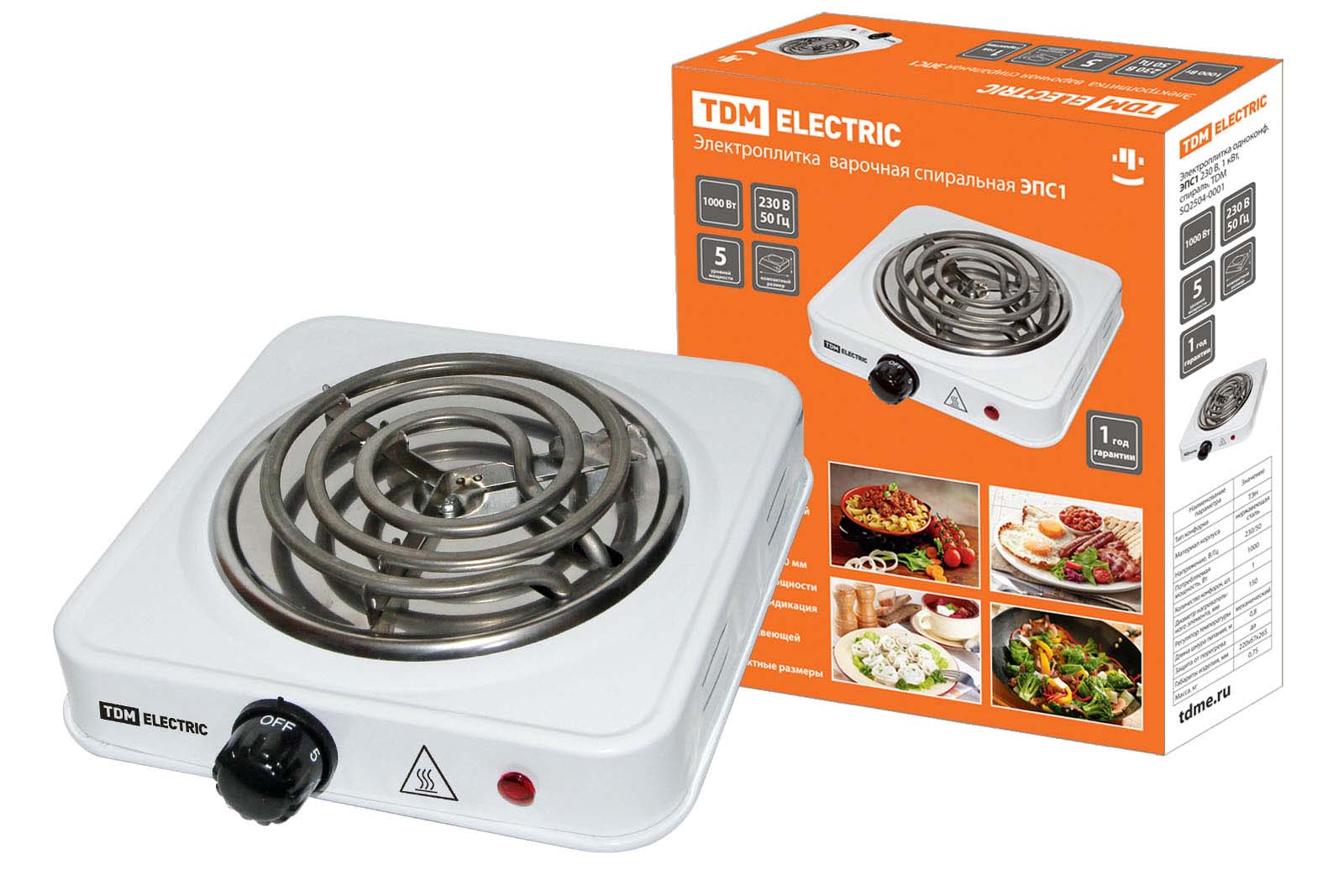 Наименование: Электроплитка одноконф. ЭПС1 230 В, 1 кВт, спираль, белая, TDM