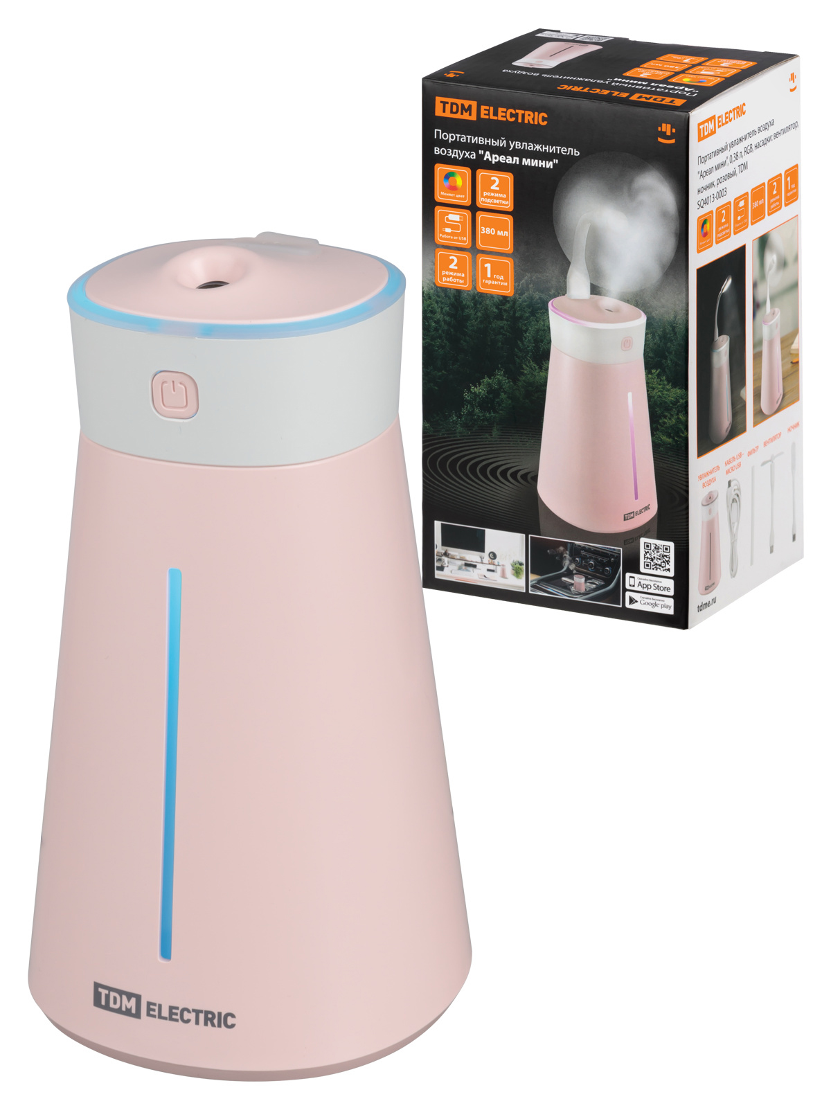 Наименование: Портативный увлажнитель воздуха "Ареал мини", 0,38 л, RGB, насадки: вентилятор, ночник, розовый, TDM