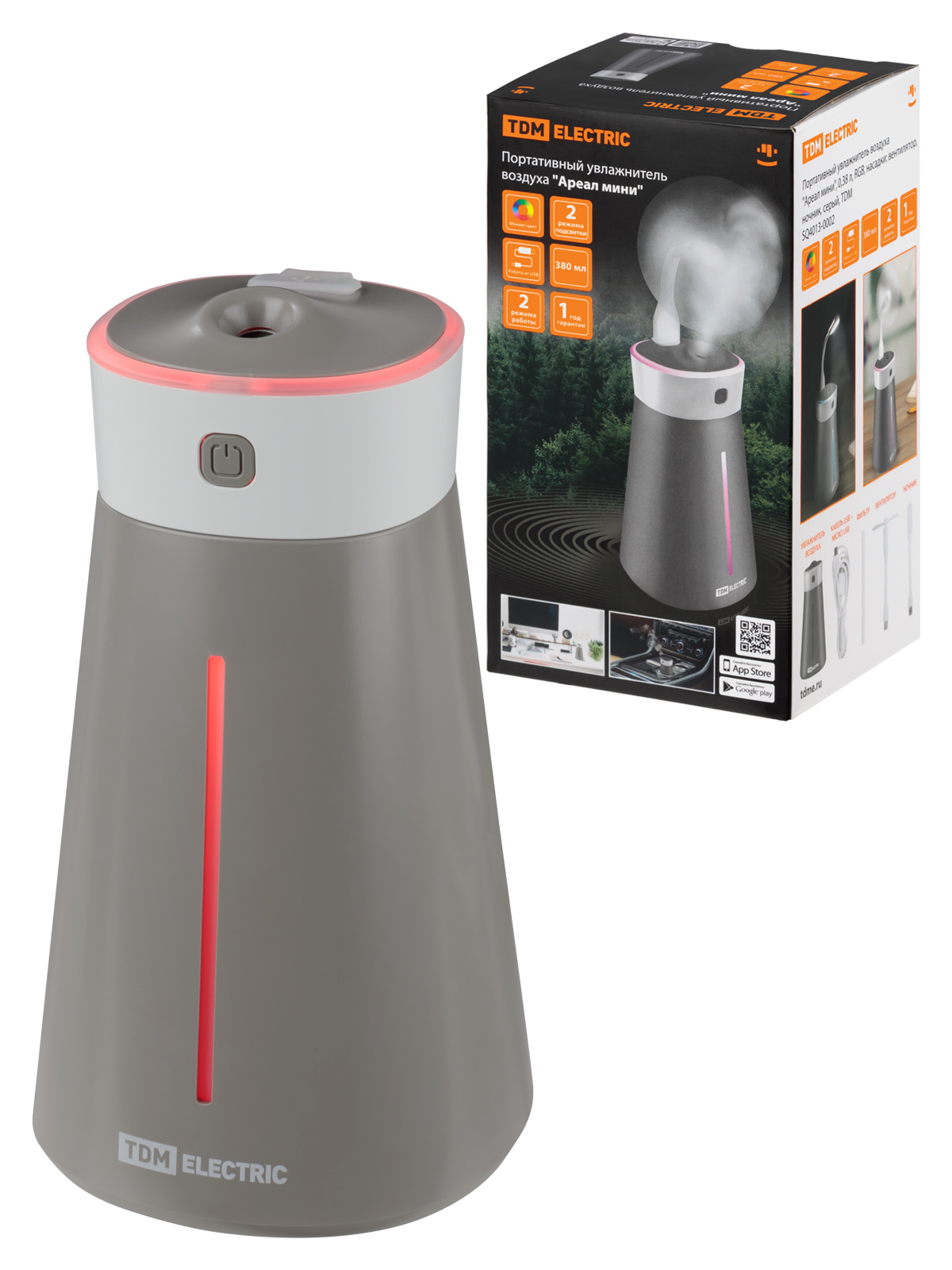 Наименование: Портативный увлажнитель воздуха "Ареал мини", 0,38 л, RGB, насадки: вентилятор, ночник, серый, TDM