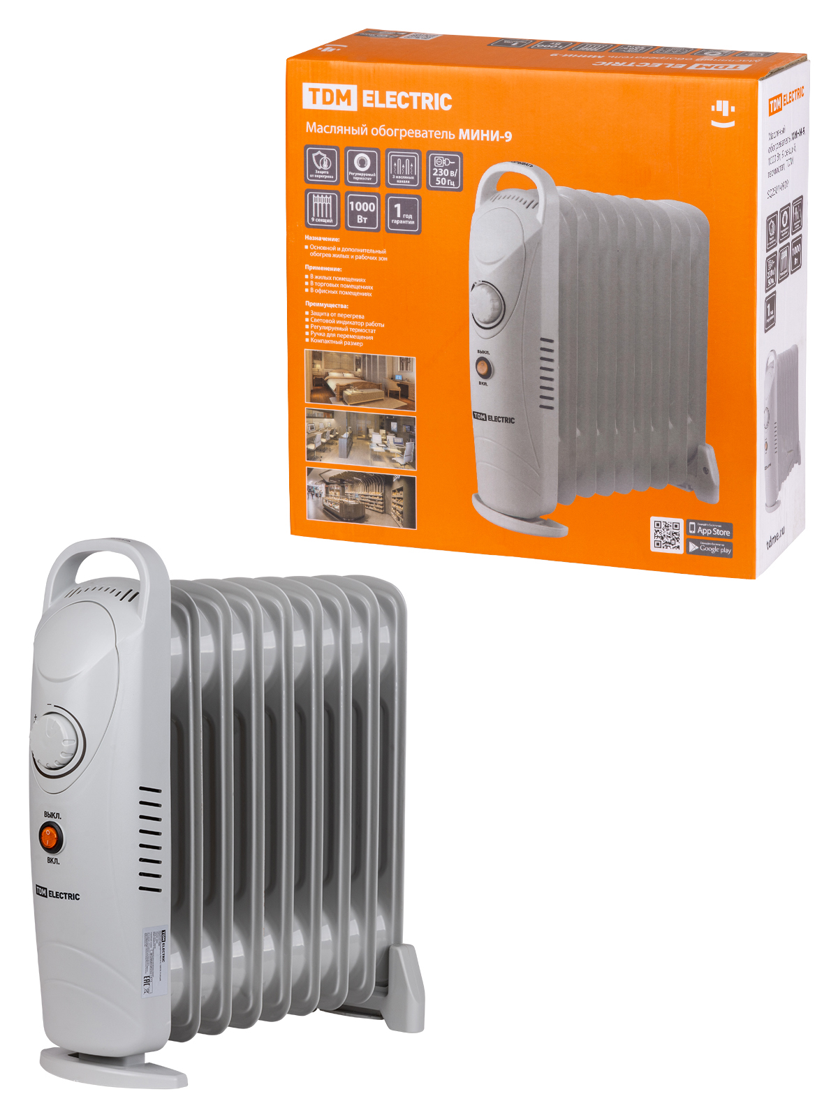 Масляный обогреватель МИНИ-9, 1000 Вт, 9 секций, термостат, TDM