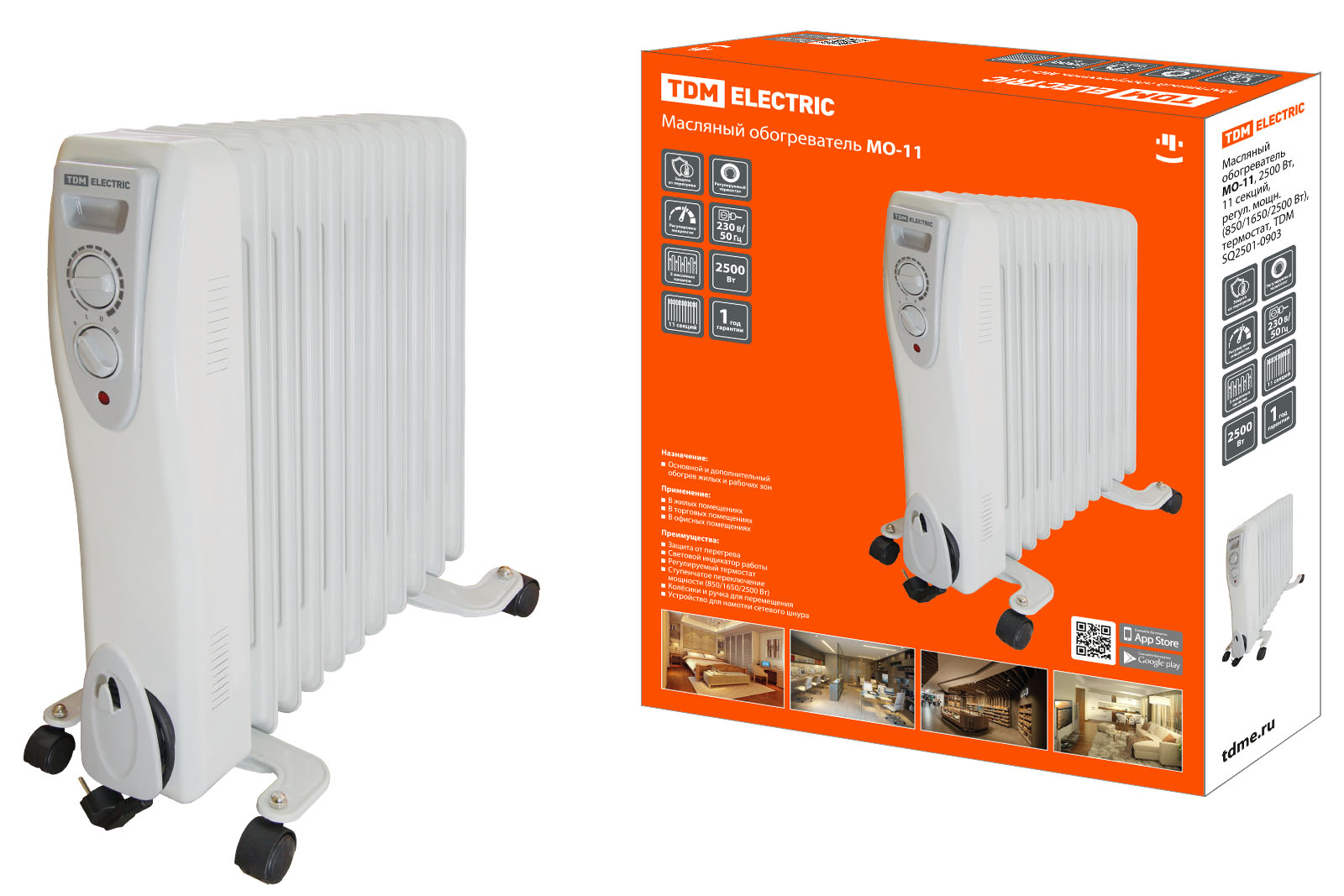 Наименование: Масляный обогреватель МО-11, 2500 Вт, 11 секций, регул. мощн. (850/1650/2500 Вт), термостат, TDM