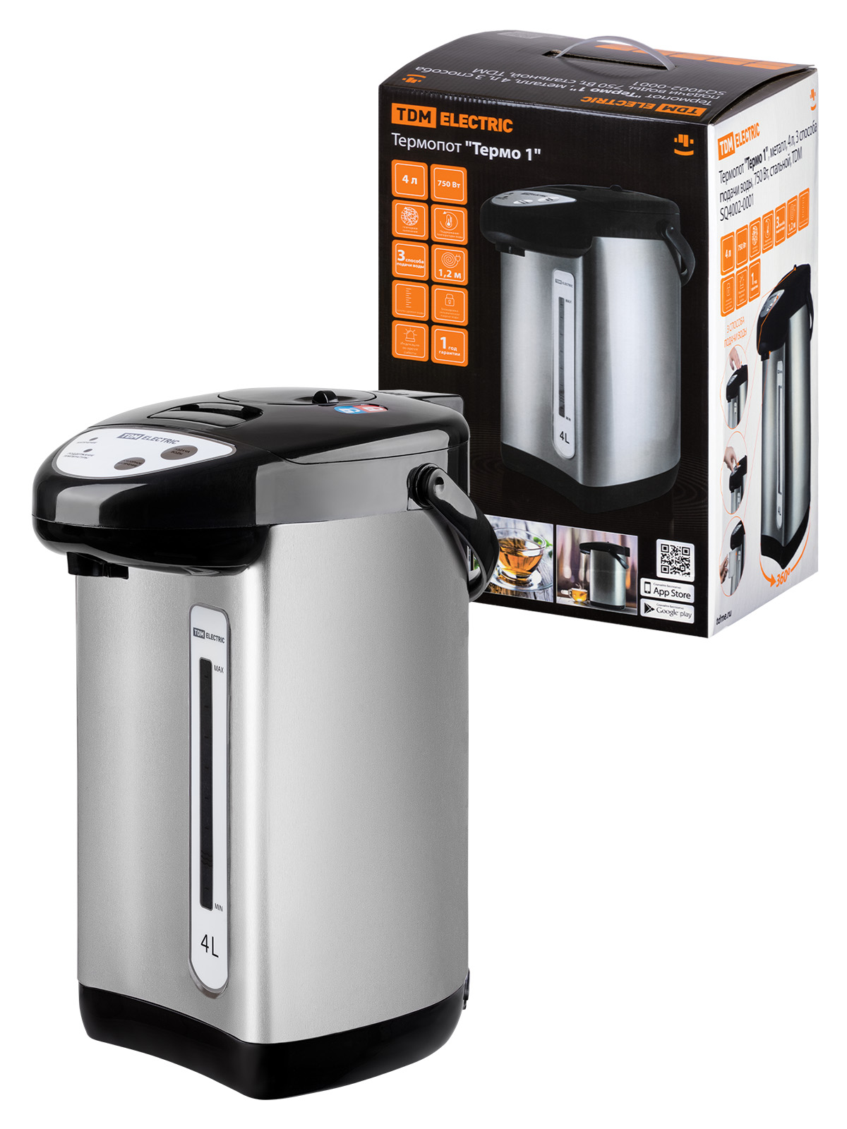 Термопот "Термо 1", металл, 4 л, 3 способа подачи воды, 750 Вт, стальной, TDM