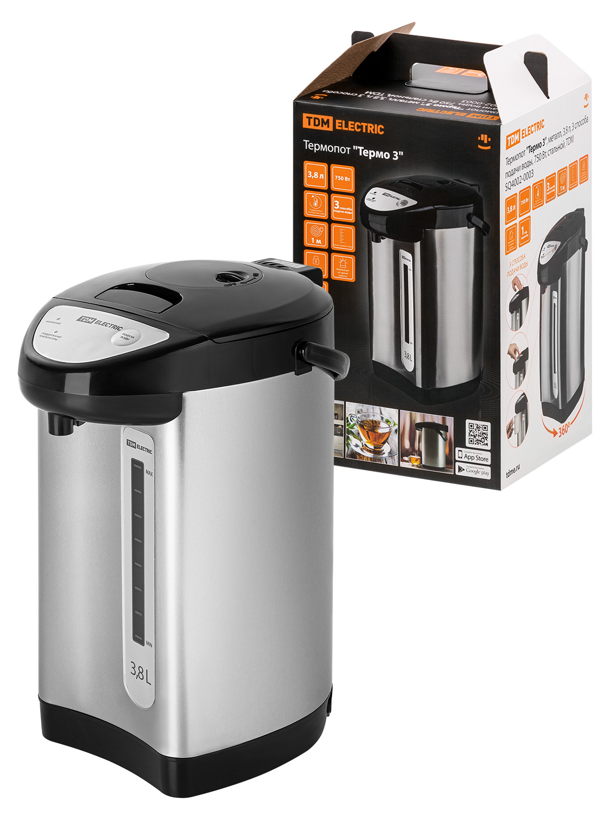 Наименование: Термопот "Термо 3", металл, 3,8 л, 3 способа подачи воды, 750 Вт, стальной, TDM