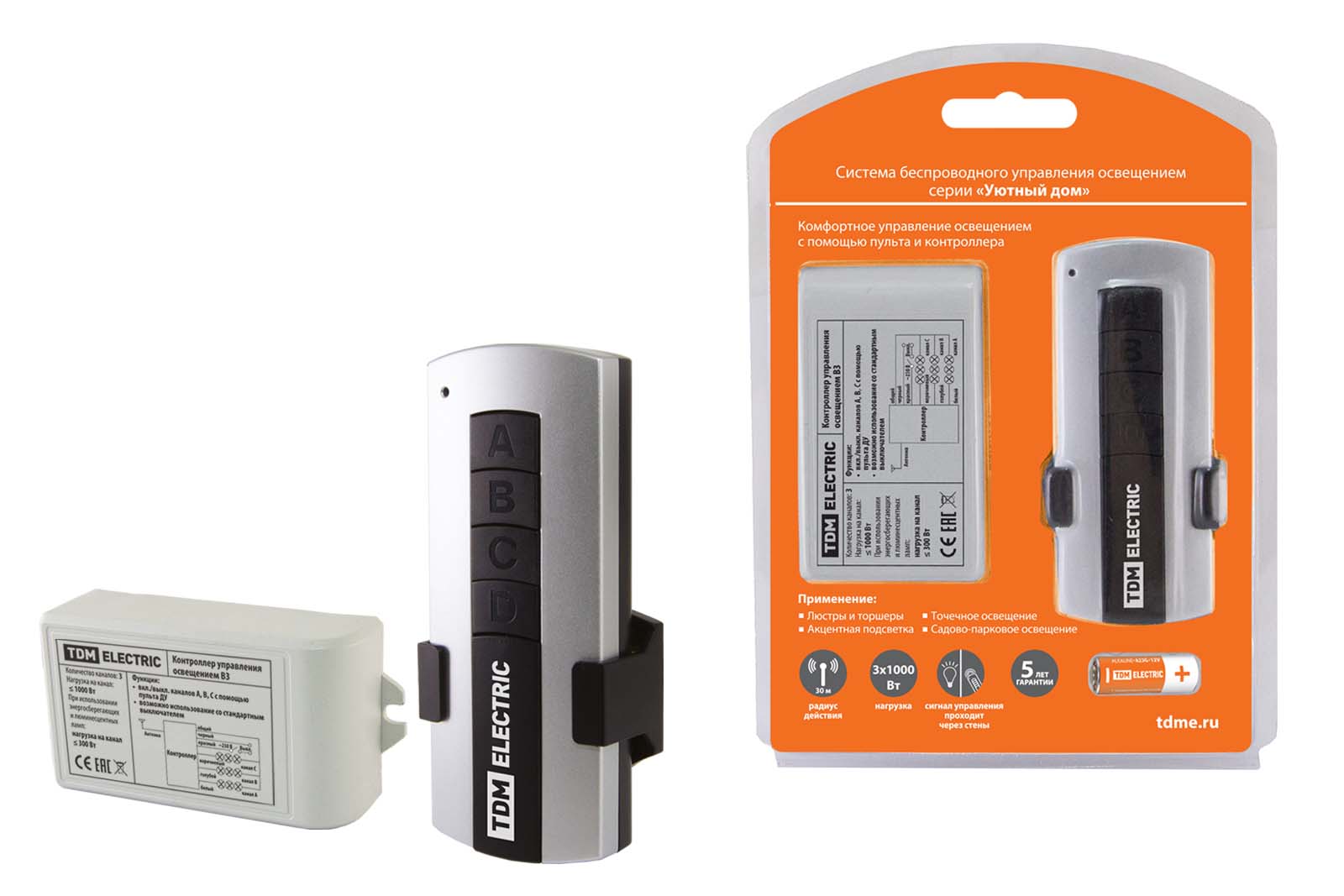 Наименование: Комплект для беспроводного управления освещением ПУ1-МK-3 (3 канала) "Уютный дом" TDM