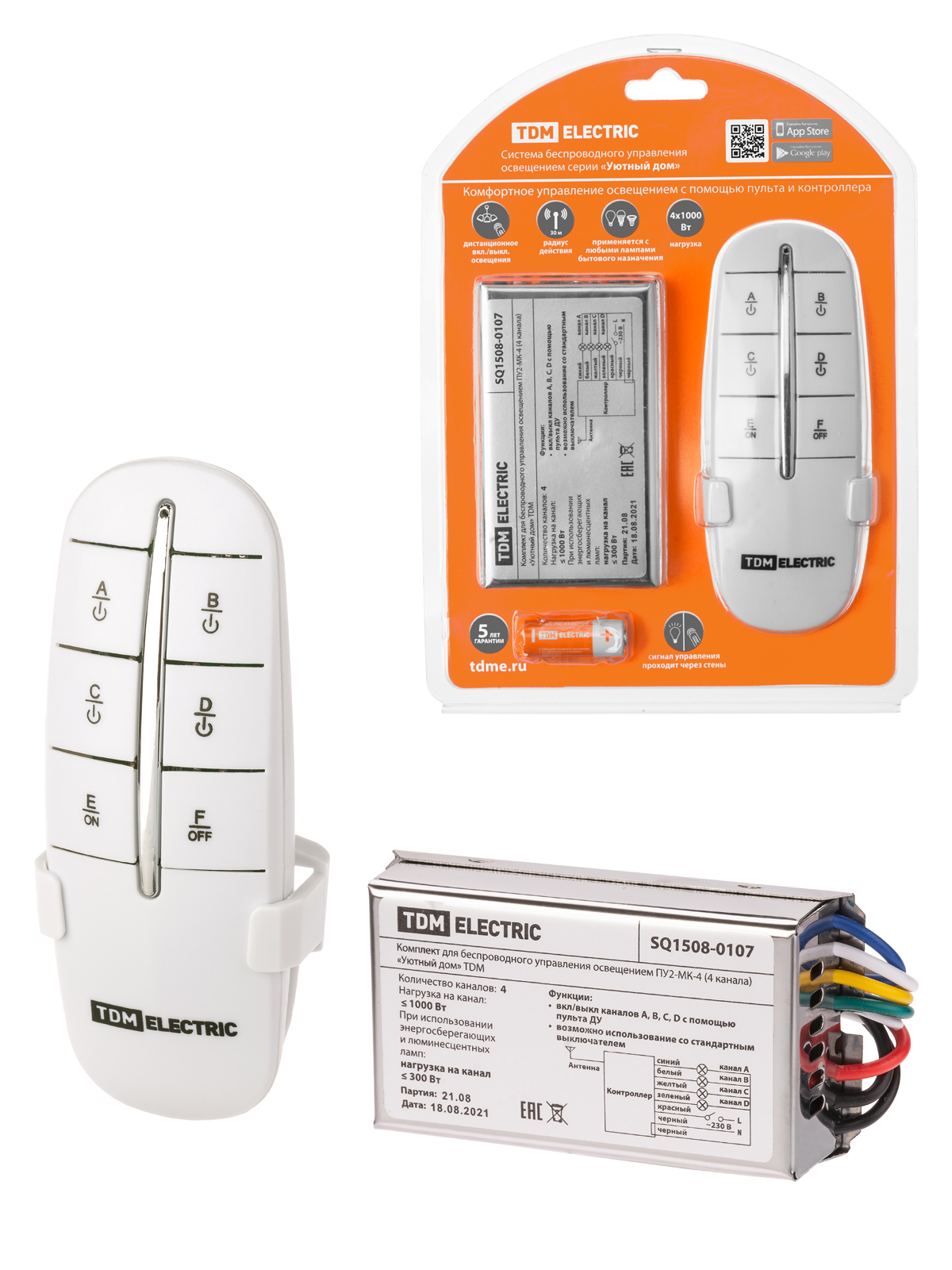 Наименование: Комплект для беспроводного управления освещением ПУ2-МK-4 (4 канала) "Уютный дом" TDM