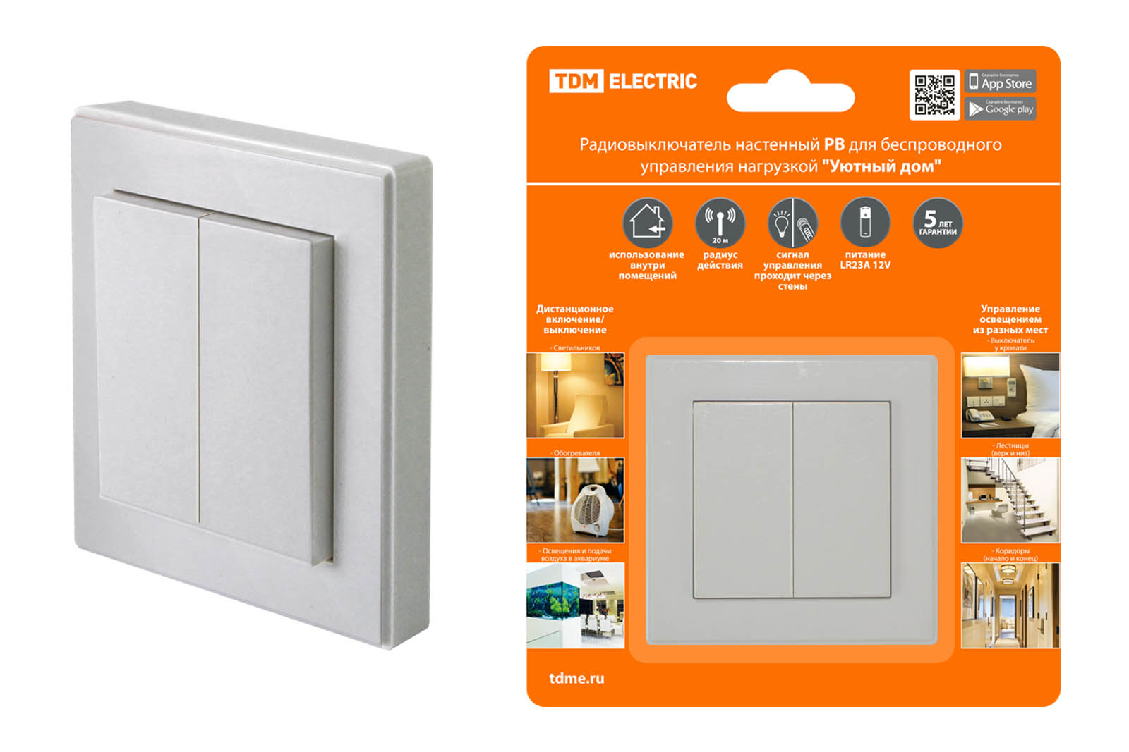 Наименование: Радиовыключатель настенный РВ2 (2 клав.) для беспроводного управления нагрузкой "Уютный дом" TDM