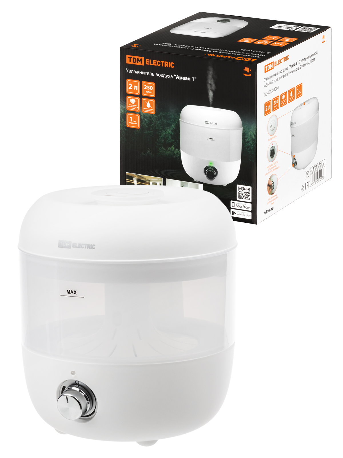 Наименование: Увлажнитель воздуха "Ареал 1", ультразвуковой, объём 2 л, производительность 250 мл/ч, TDM
