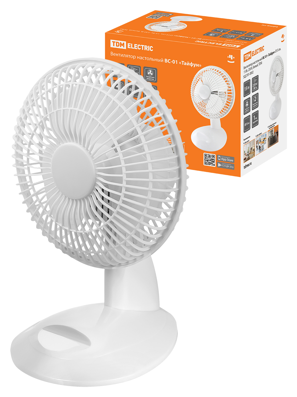 Наименование: Вентилятор настольный ВС-01 "Тайфун" D15 см, 15 Вт, 230 В, белый, TDM