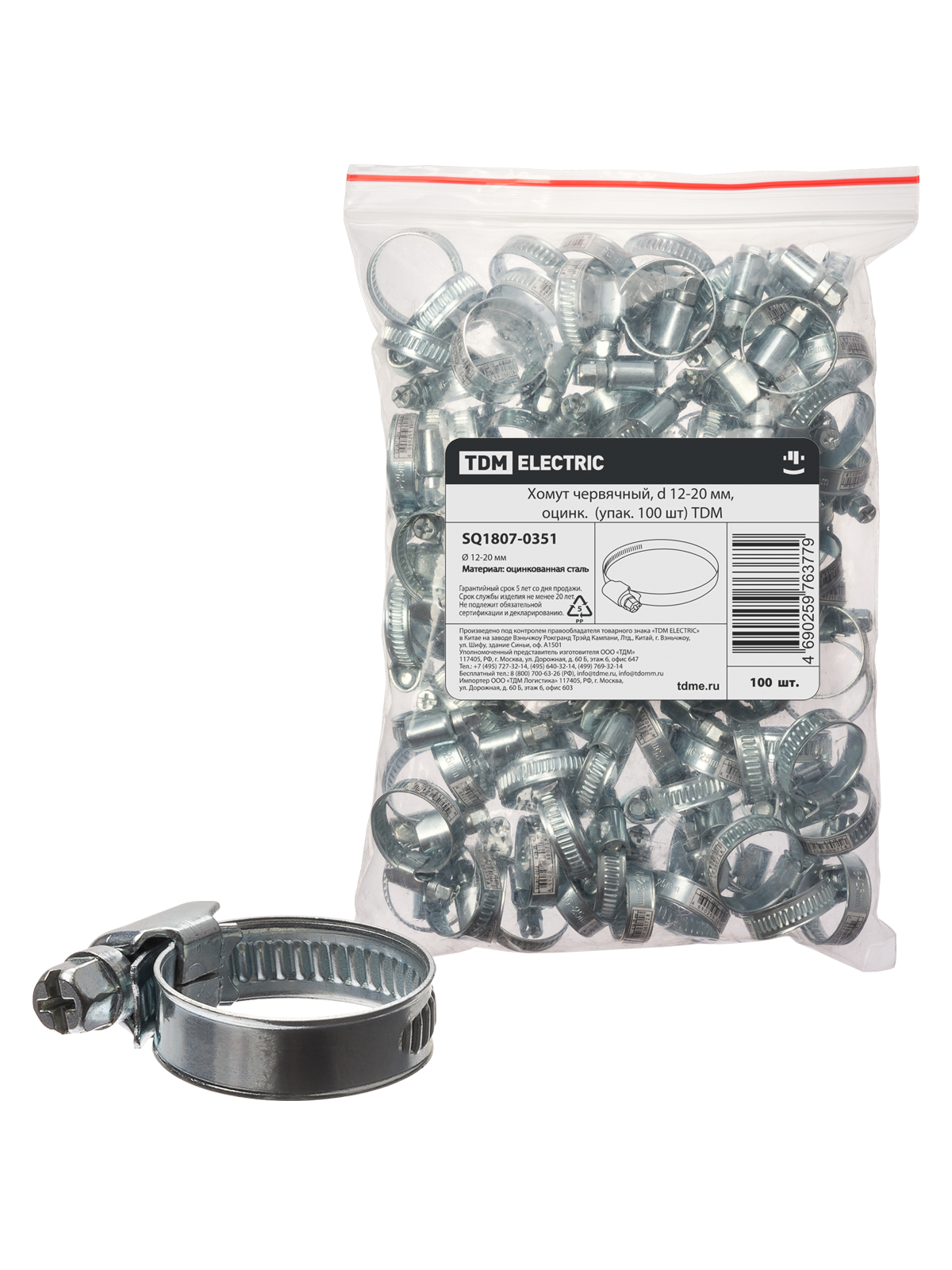 Наименование: Хомут червячный, d 12-20 мм, оцинк (упак. 100 шт) TDM