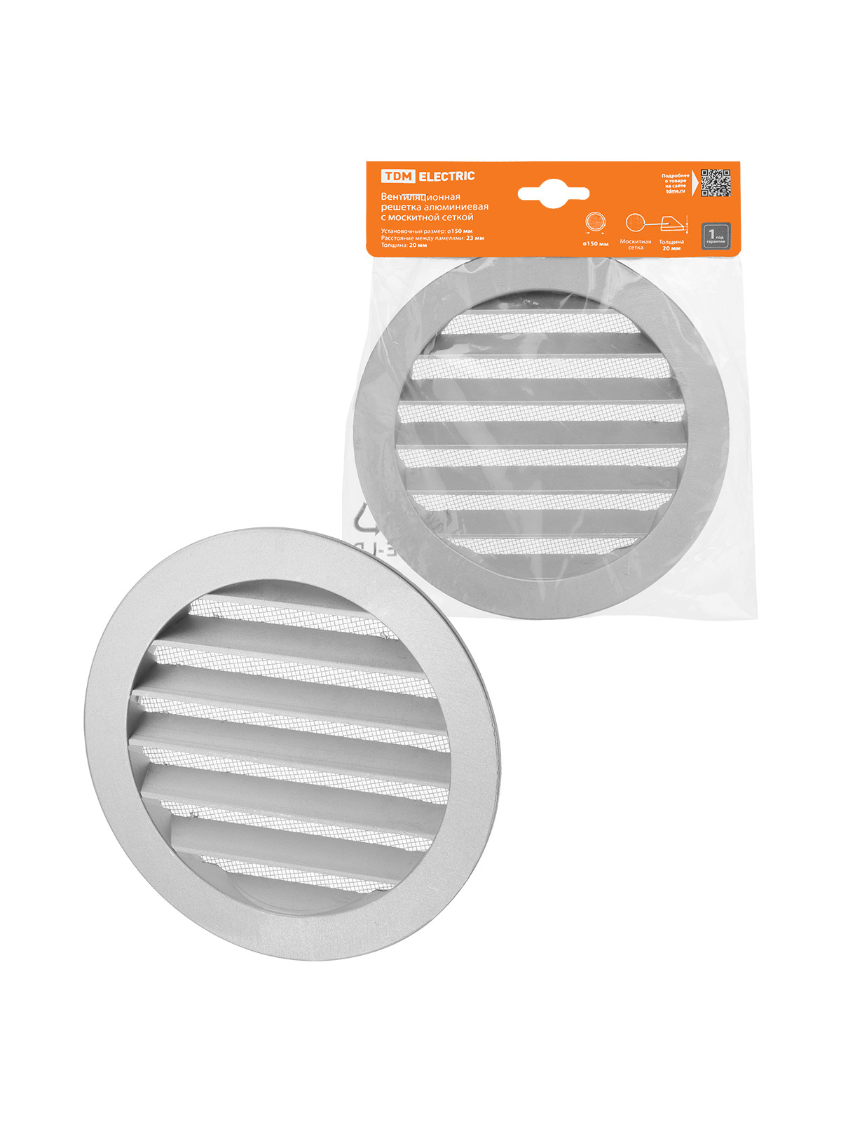 Наименование: Решетка вентиляционная круглая алюминиевая с москитной сеткой, с фланцем d150, внеш. D180, TDM
