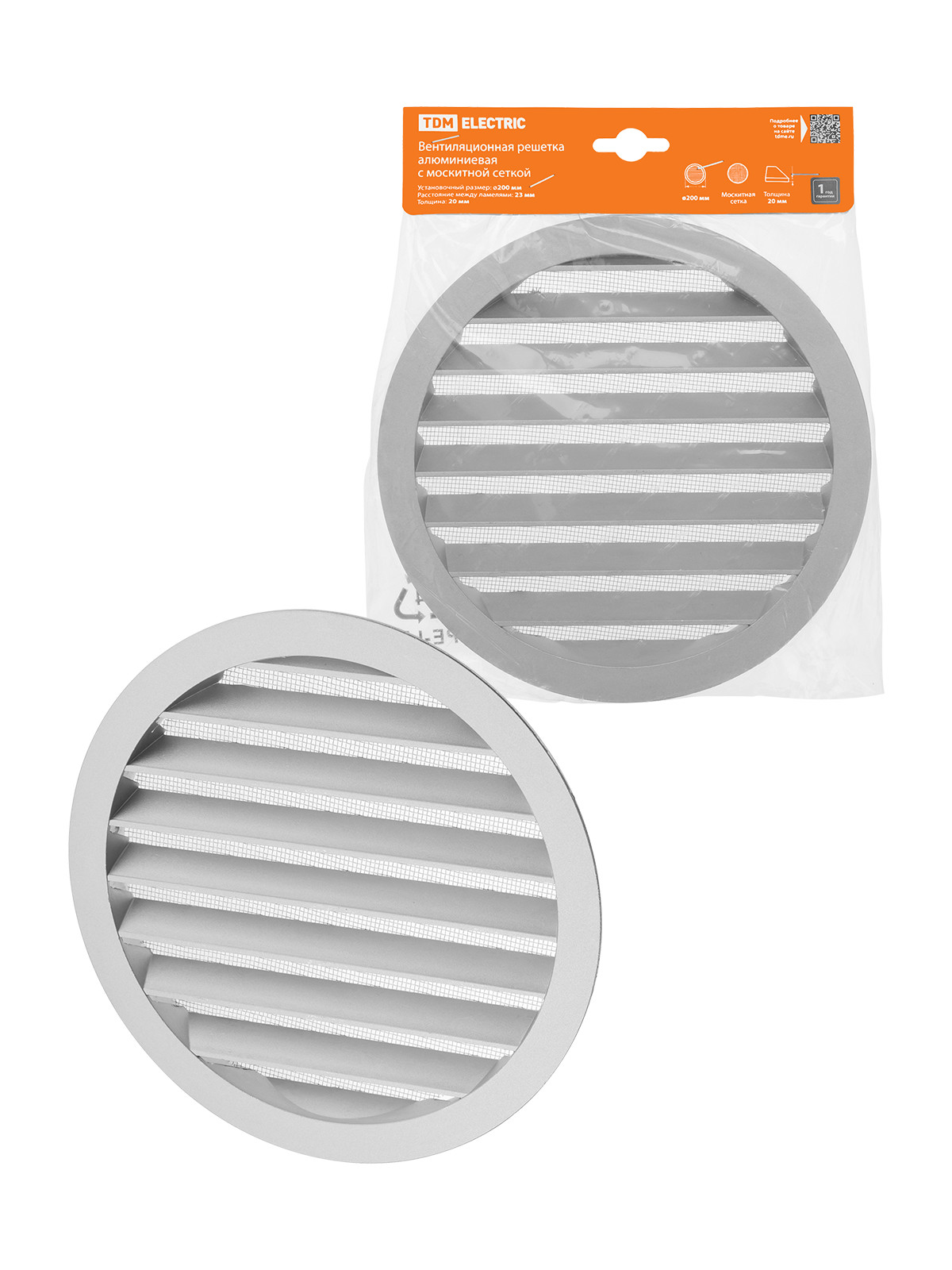 Наименование: Решетка вентиляционная круглая алюминиевая с москитной сеткой, с фланцем d200, внеш. D225, TDM