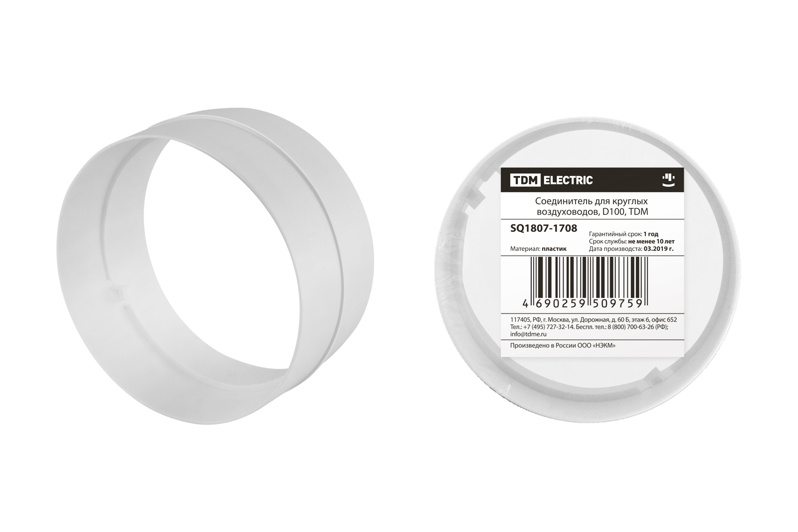 Наименование: Соединитель для круглых воздуховодов, D100, TDM