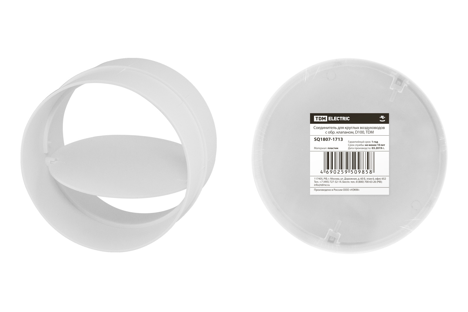 Наименование: Соединитель для круглых воздуховодов с обр. клапаном, D100, TDM