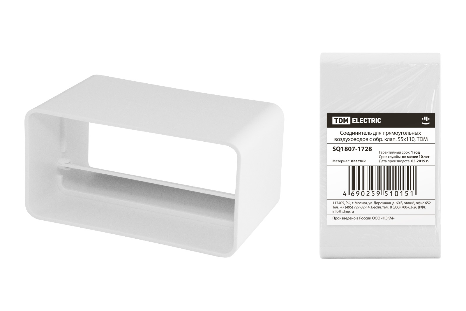 Наименование: Соединитель для прямоугольных воздуховодов с обр. клап. 55х110, TDM