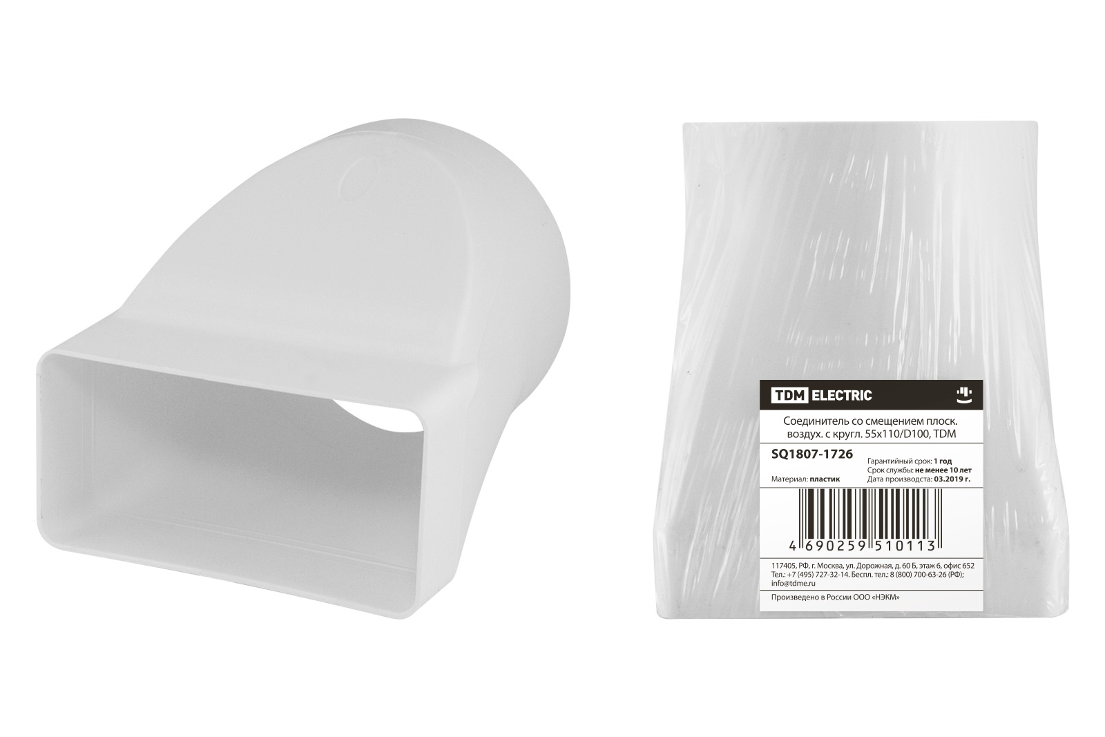 Наименование: Соединитель со смещением плоск. воздух. с кругл. 55х110/D100, TDM