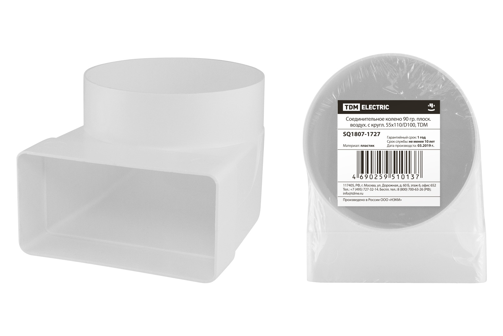 Наименование: Соединительное колено 90 гр. плоск. воздух. с кругл. 55х110/D100, TDM