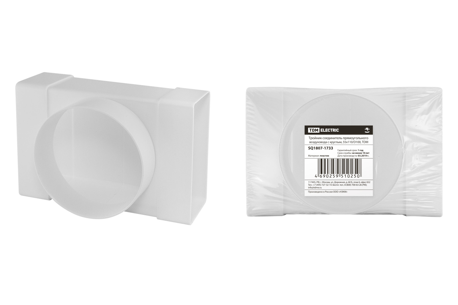 Наименование: Тройник соединитель прямоугольного воздуховода с круглым, 55х110/D100, TDM