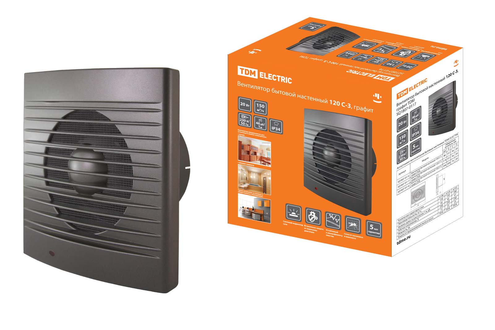 Наименование: Вентилятор бытовой настенный 120 С-3, графит TDM