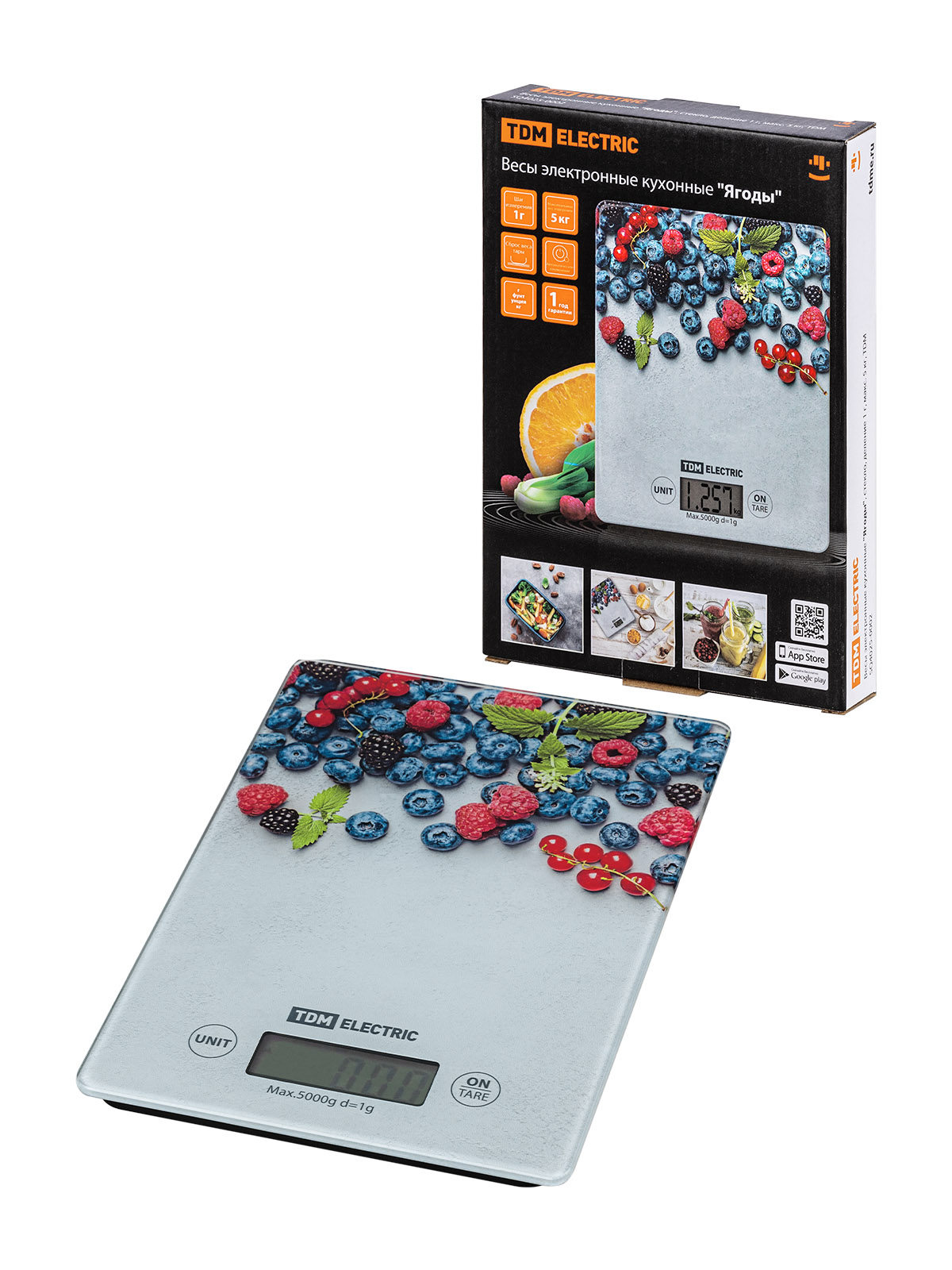 Наименование: Весы электронные кухонные "Ягоды", стекло, деление 1 г, макс. 5 кг, TDM