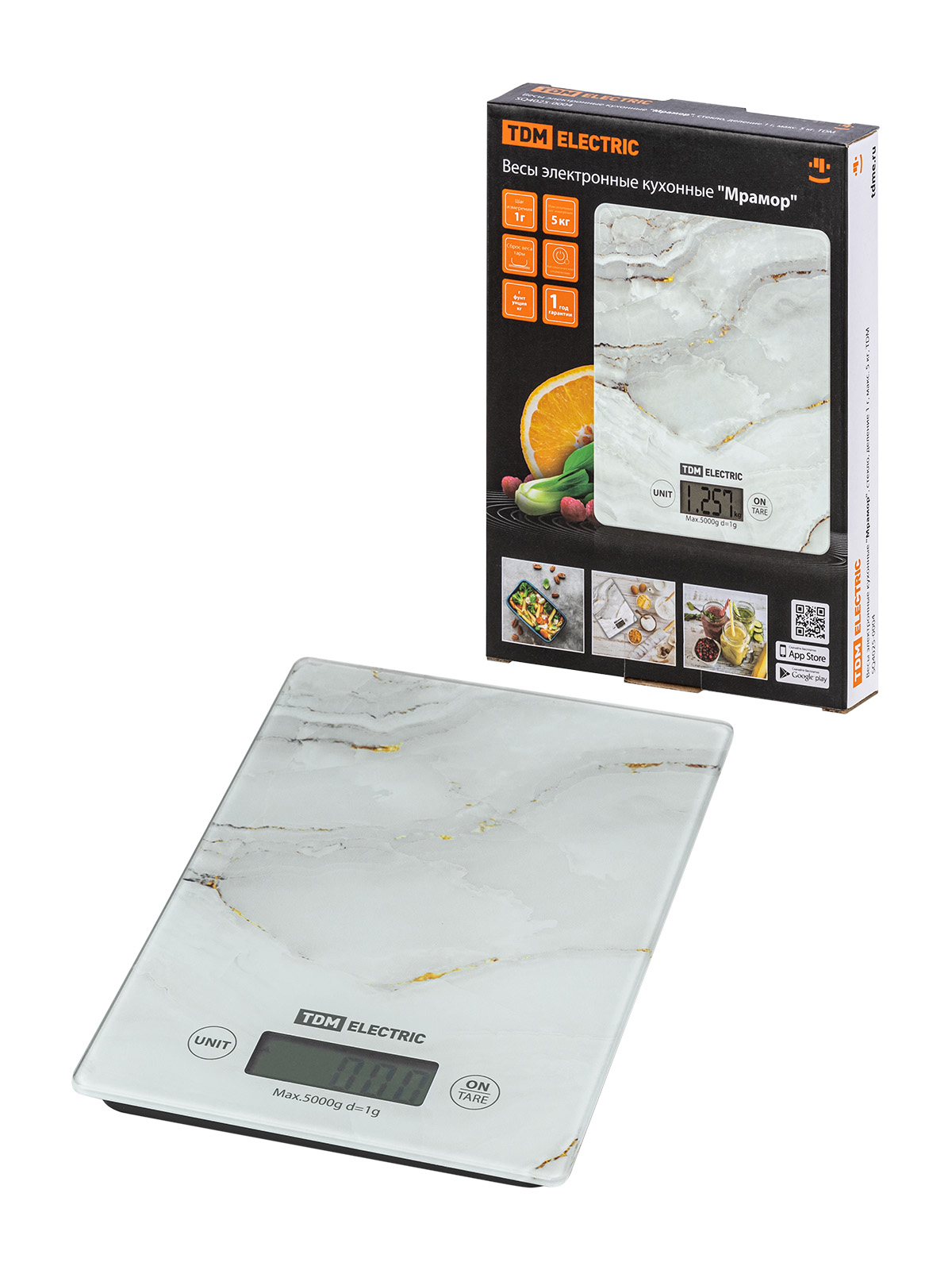 Наименование: Весы электронные кухонные "Мрамор", стекло, деление 1 г, макс. 5 кг, TDM