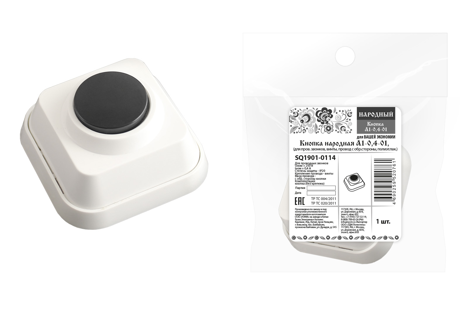 Наименование: Кнопка народная А1-0,4-01 (для пров. звонков, винты, провод с обр.стороны, полиэт.пак.)