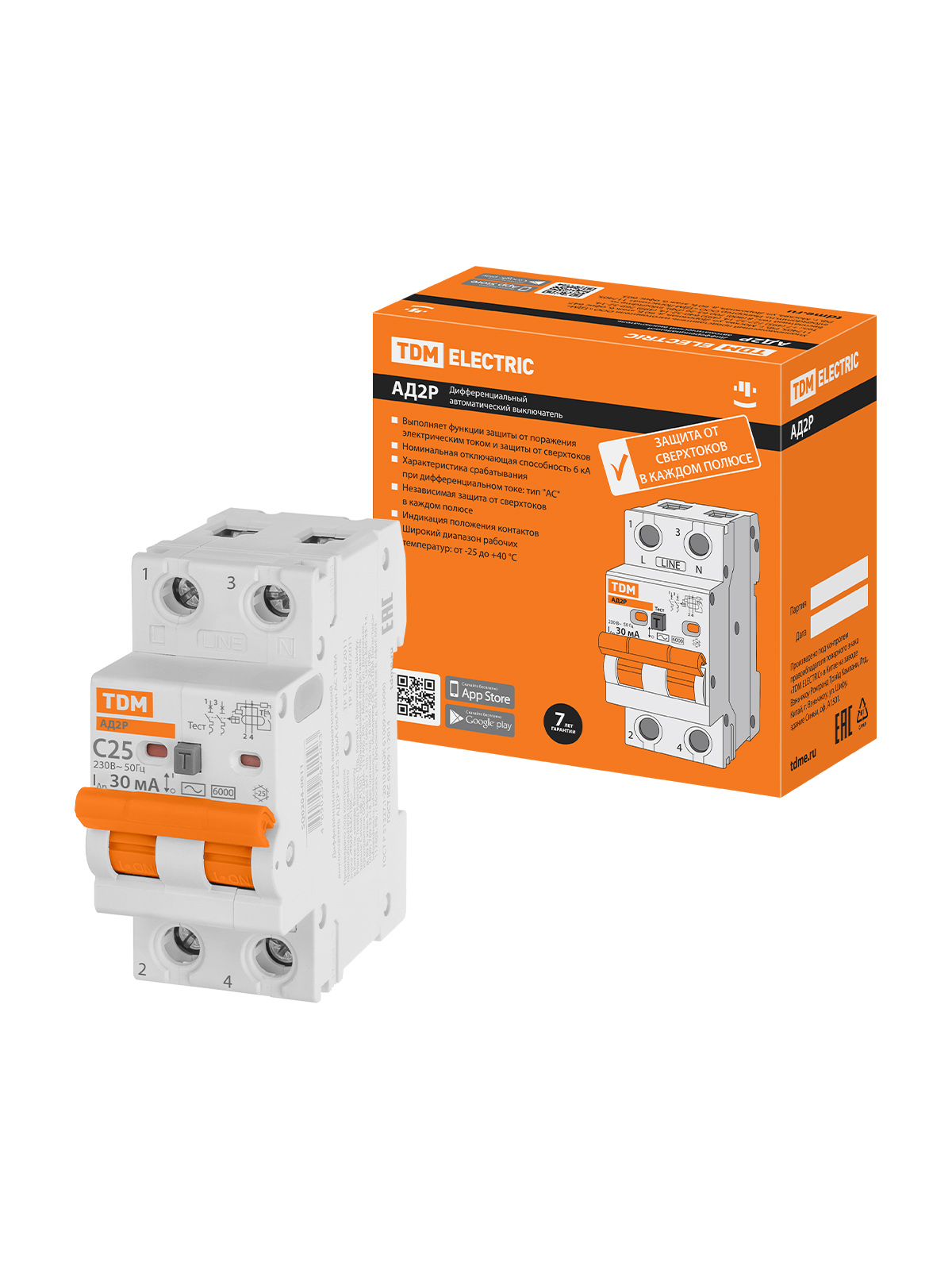Наименование: Диф.автомат АД2P 2Р С25 30мА 6кА тип АС TDM