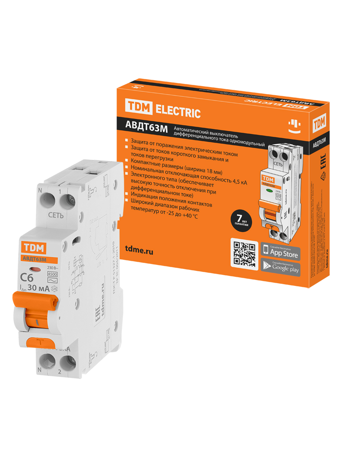 Наименование: АВДТ 63М 2P(1P+N) C6 30мА 4,5кА тип АС TDM