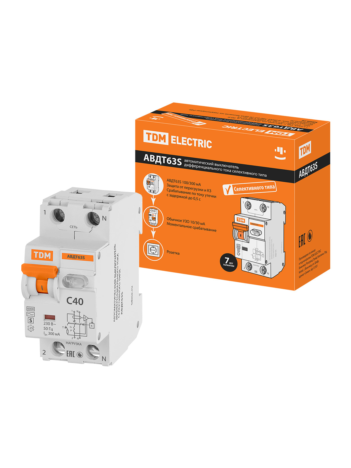Наименование: АВДТ 63S 2P(1P+N) C40 300мА 6кА тип АС TDM