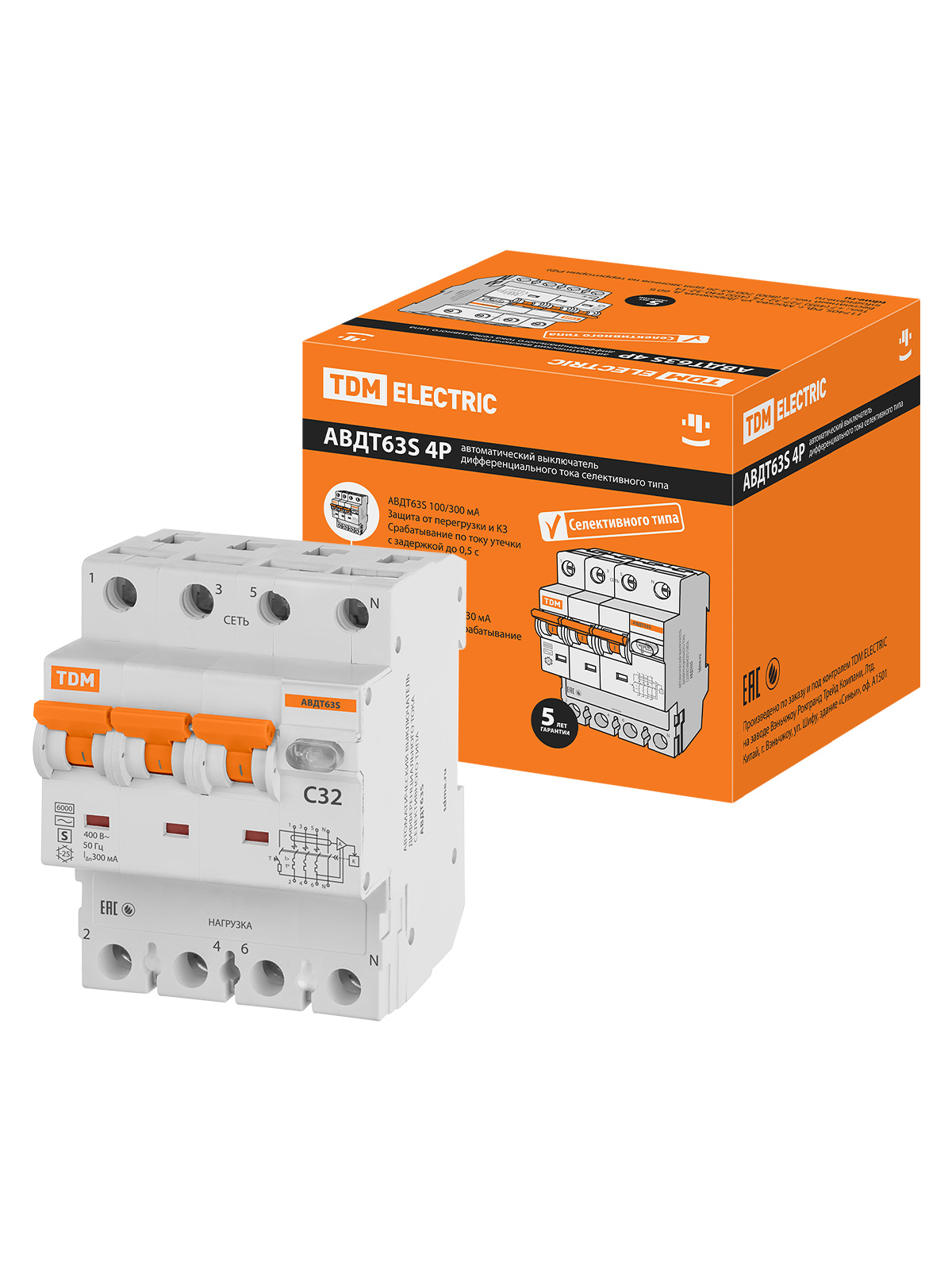 Наименование: АВДТ 63S 4P(3P+N) C32 300мА 6кА тип АС TDM