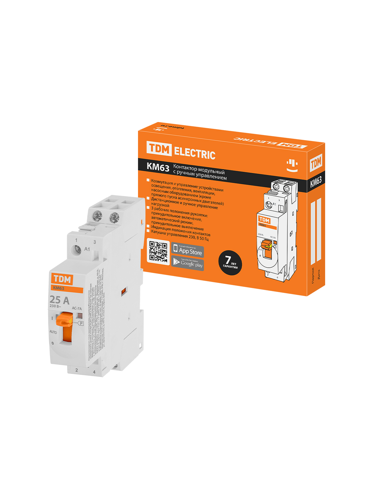 Наименование: Контактор модульный с ручным управлением КМ63/2-25 2НО 230В АС TDM