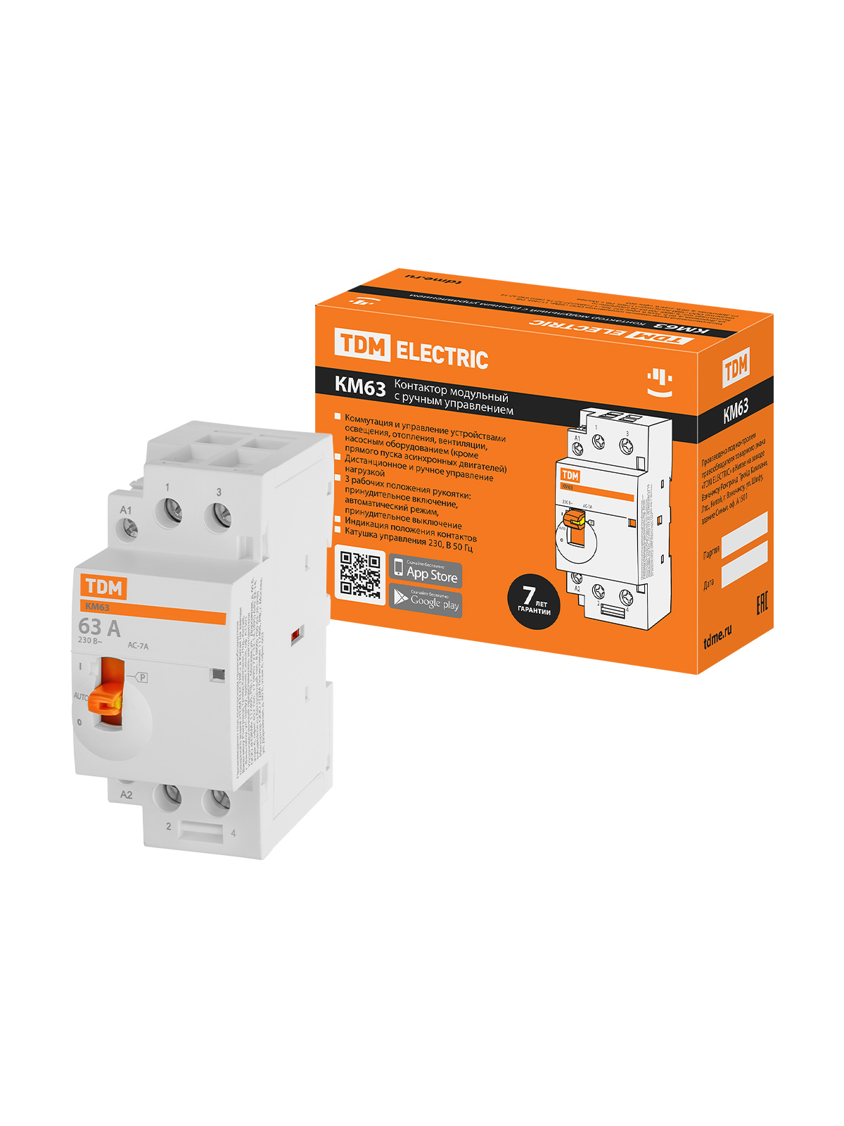 Наименование: Контактор модульный с ручным управлением КМ63/2-63 2НО 230В АС TDM