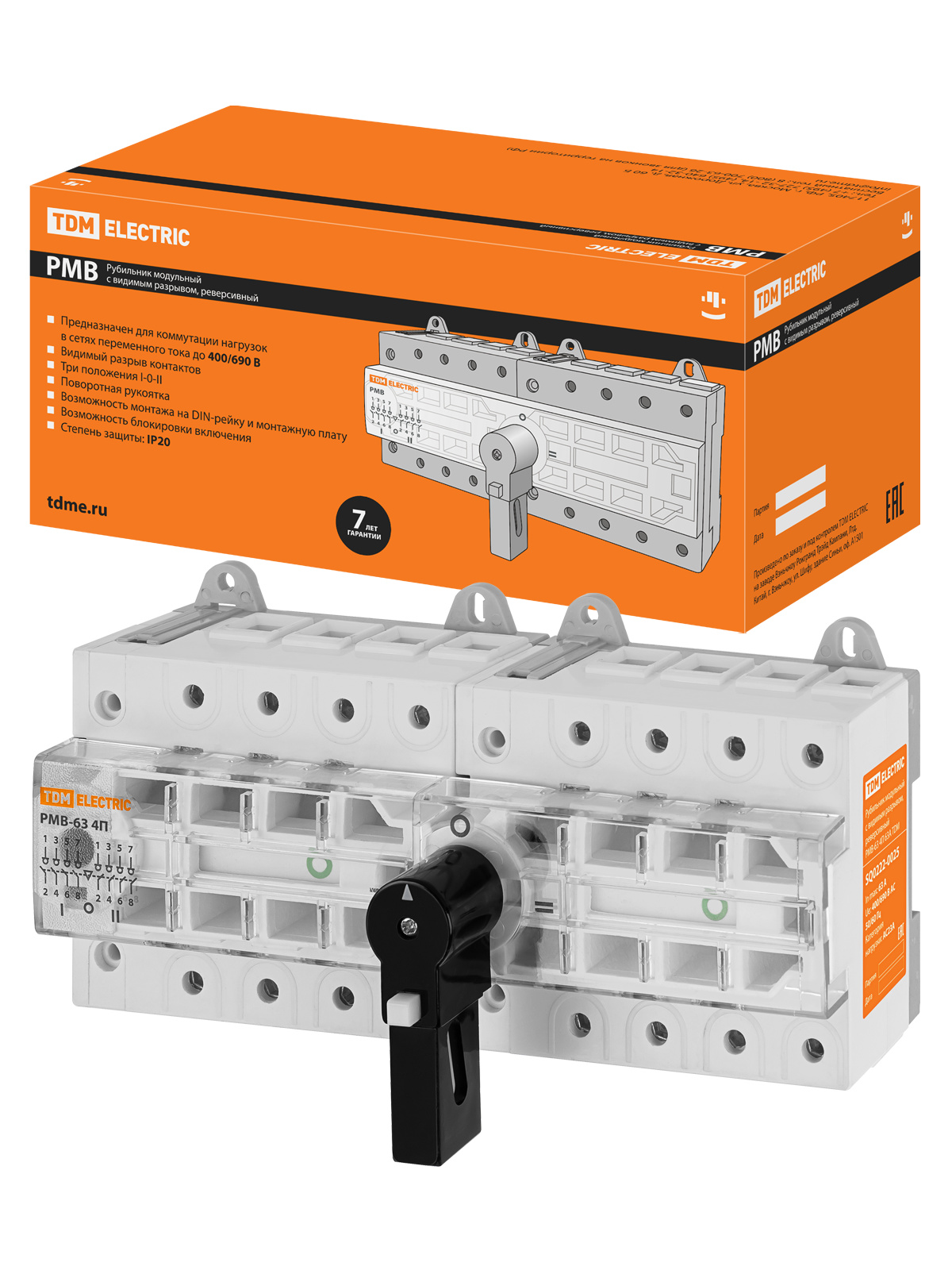 Наименование: Рубильник модульный с видимым разрывом, реверсивный РМВ-63 4П I-0-II 63A TDM