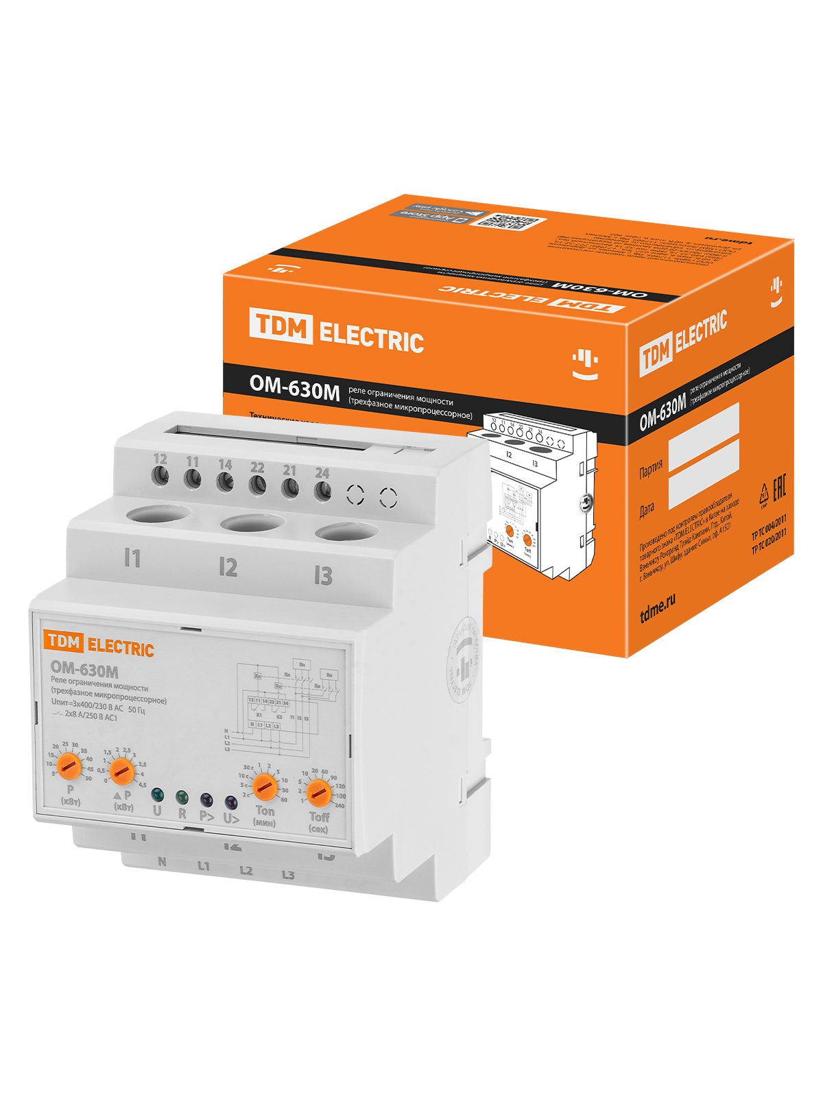 Наименование: Реле ограничения мощности ОМ-630М 5/50-3Н-01 (3ф, 5-50кВт, 4мод, сумм. расчет, с реле напр.) TDM