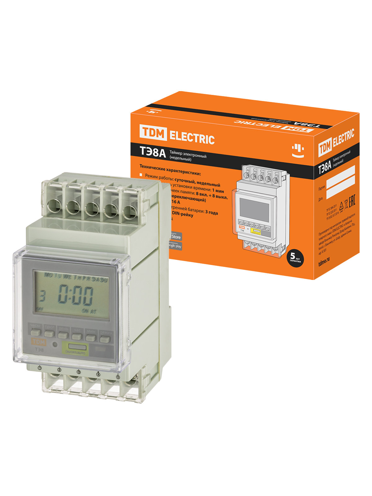Наименование: Таймер электронный ТЭ8A-1мин/7дн-8on/off-16А-DIN TDM