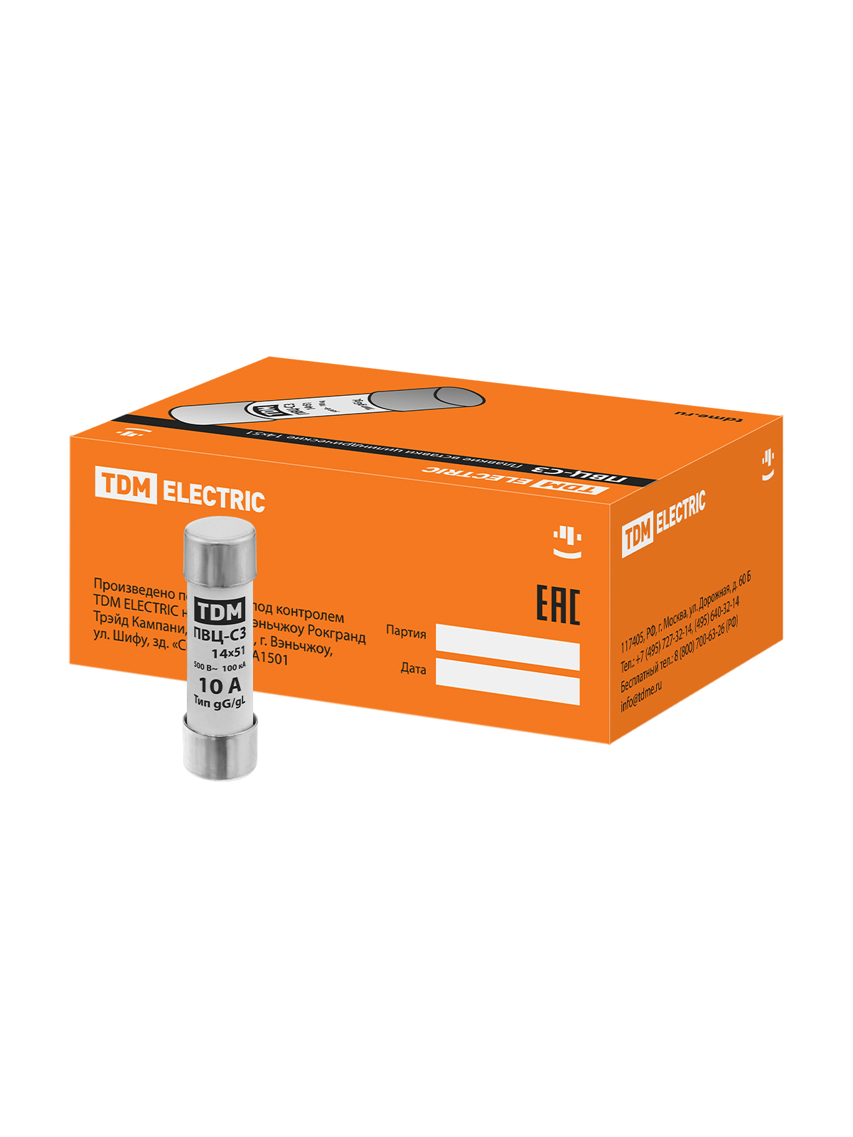 Наименование: Плавкая вставка ПВЦ-С3 14х51 10А TDM