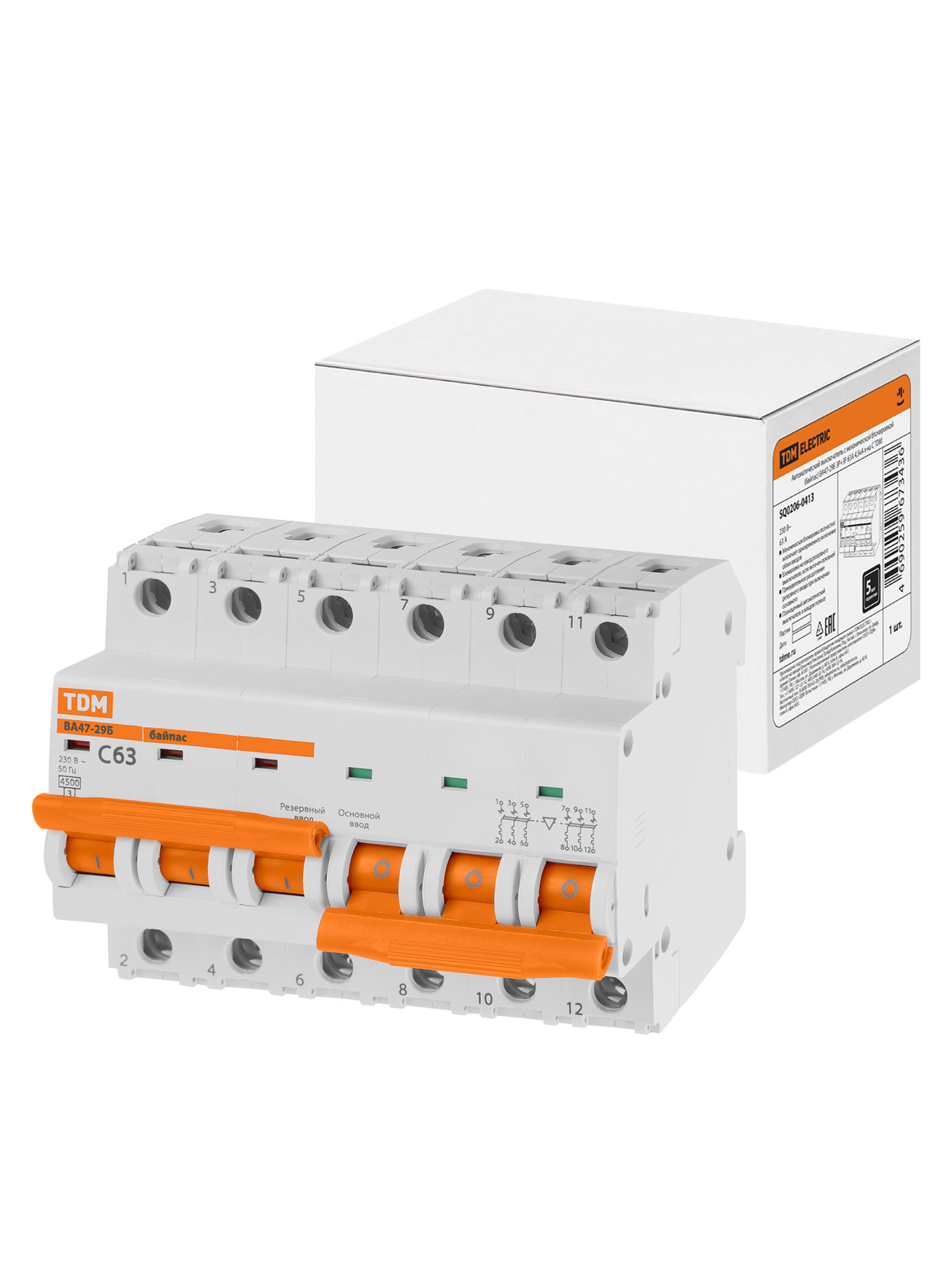 Наименование: Авт. выкл. с мех. блок. (байпас) ВА47-29Б 3Р+3Р 63А 4,5кА х-ка C TDM